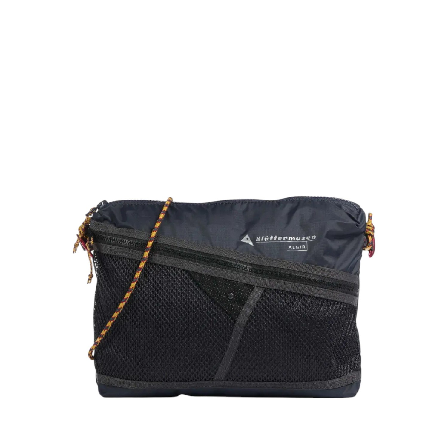 Klattermusen Navy Blue Algir Accessory Bag Large. Navy blue Algir Accessory Bag in Large is your perfect organizer for smaller items. It is a small and durable accessory bag that can be used for organizing personal items or as an accessory to your backpack, attached with toggles. Algir features an adjustable cord that can be used to hang the bag over your shoulder or around the neck to use as a tote bag, and an outside mesh pocket.