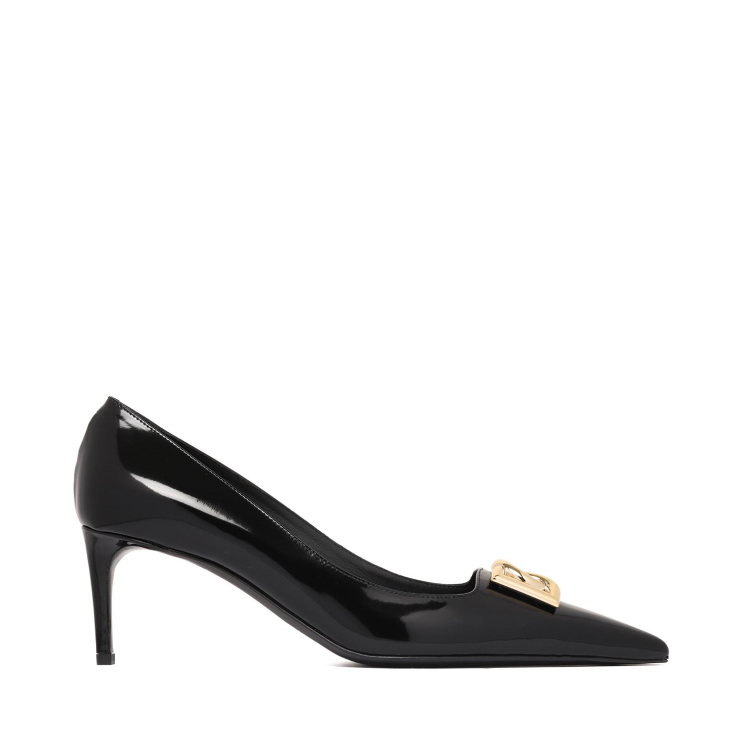 Dolce & Gabbana Black Lollo Pumps. Black shiny calfskin pumps, DG logo cut out, goatskin insole with logo label, logo leather sole.