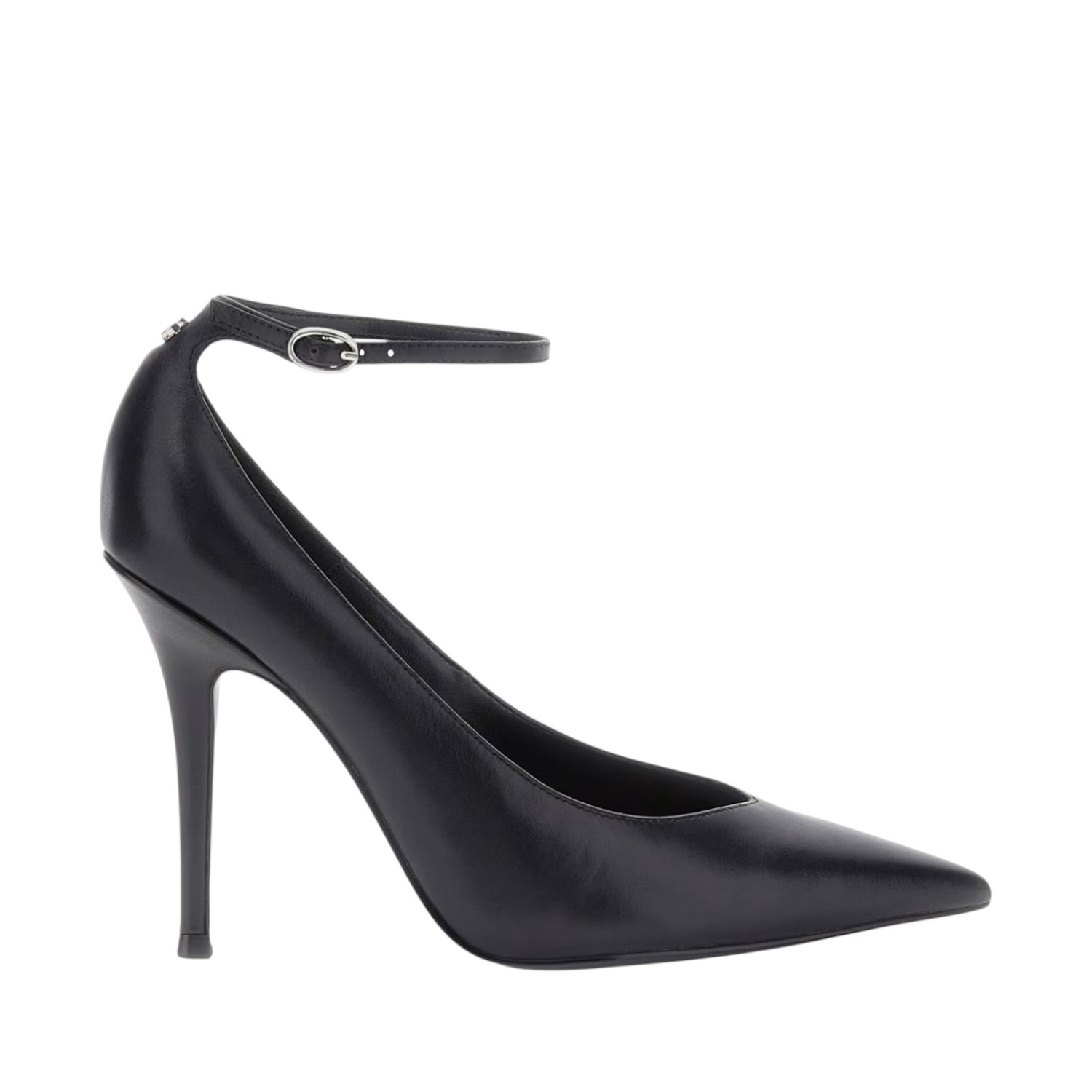 Guess Black Napril Genuine Leather Pumps. Black genuine leather pumps with pointed toe, logo detail on the back, leather insole and rubber sole.