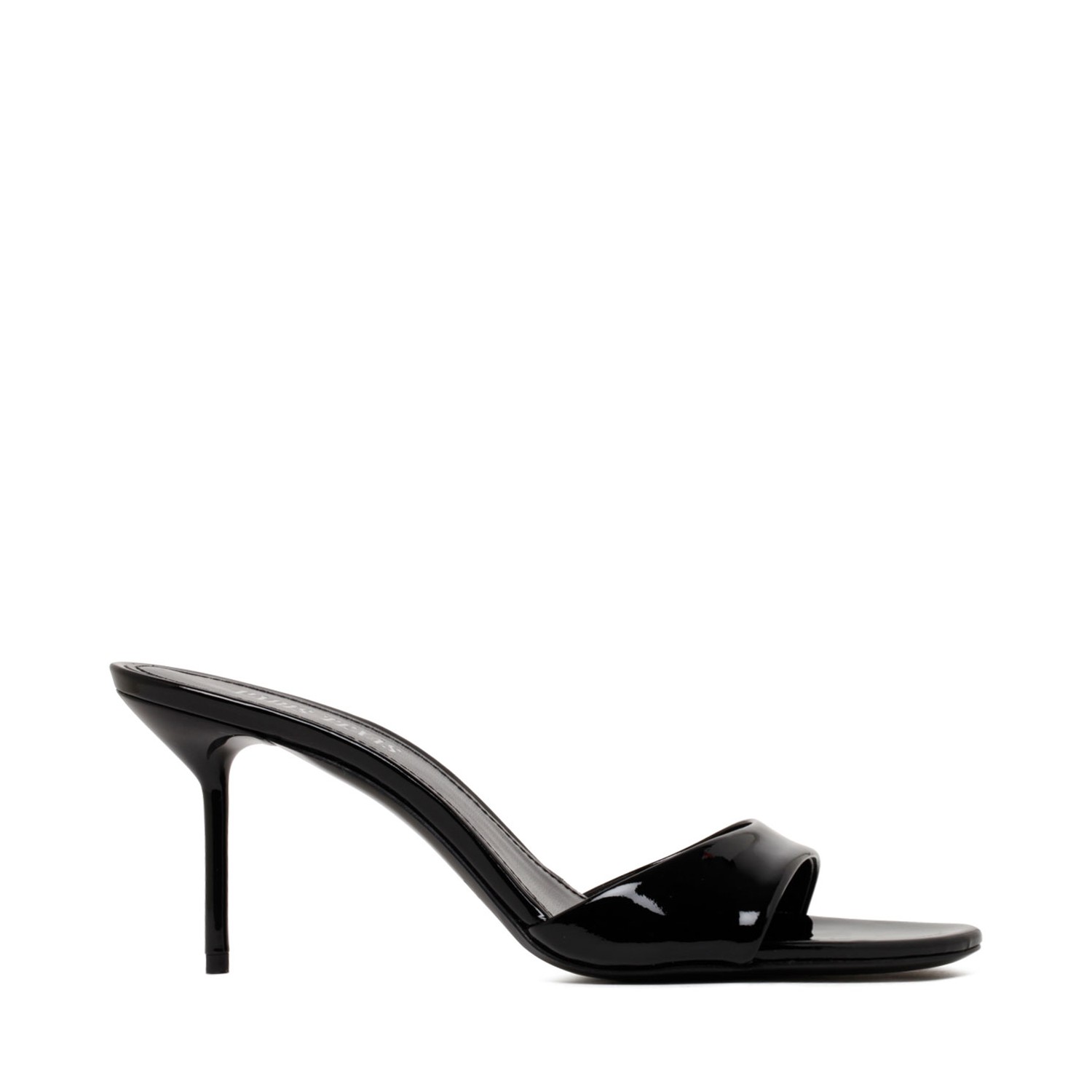 Paris Texas Black Lidia Mule 70. The Lidia mule in black patent leather features a mid-height slender heel and open toe, making it a year-round essential.