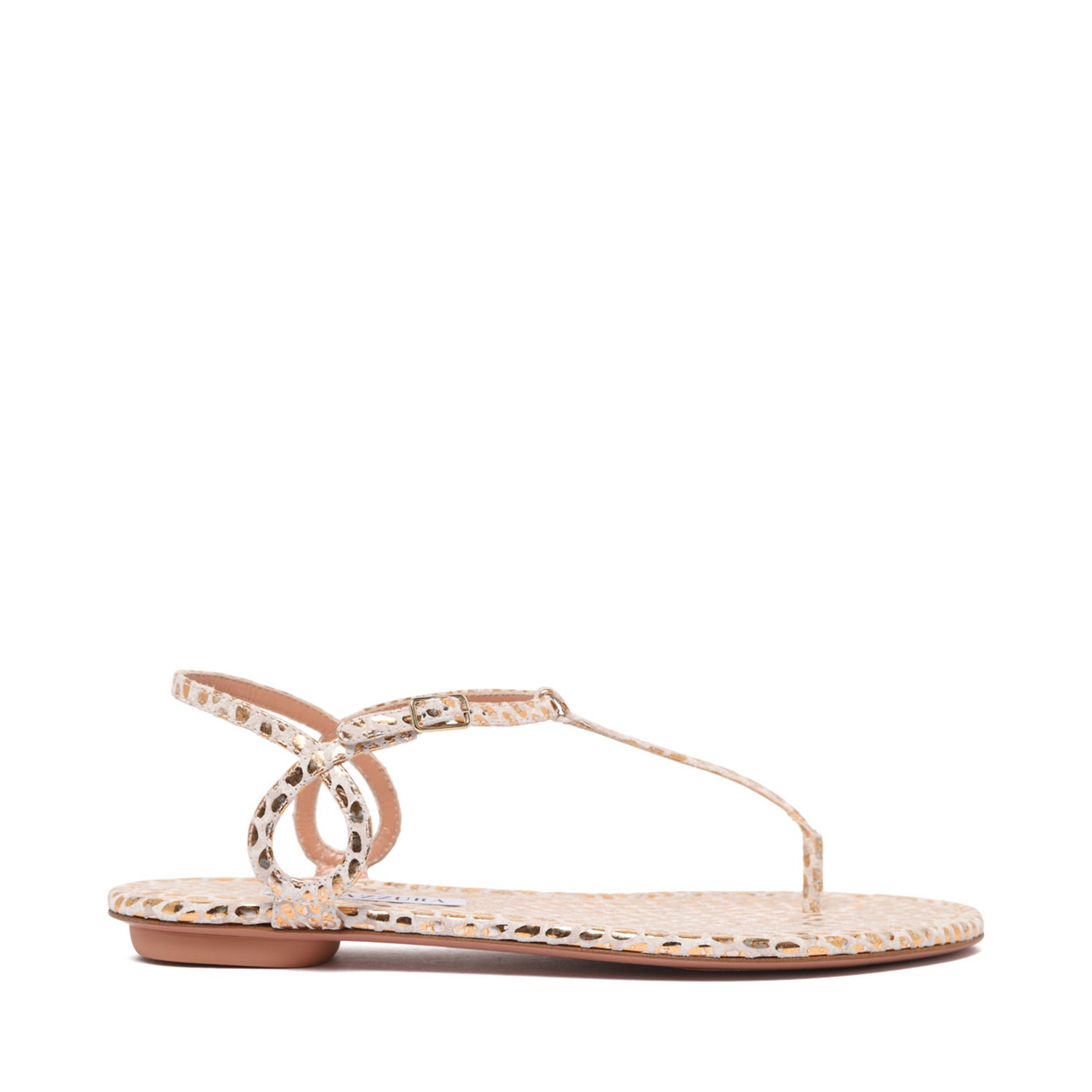 Aquazzura Soft Gold Almost Bare Sandals. Soft gold leather sandals with buckle-fastening ankle strap, branded leather insole, flat leather sole, cut-out detailing.