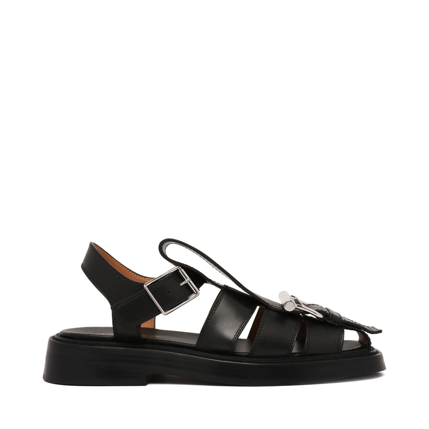 Alexander McQueen Black Leather Sandals. Black leather sandals with branded insole, buckle fastening, round toe.