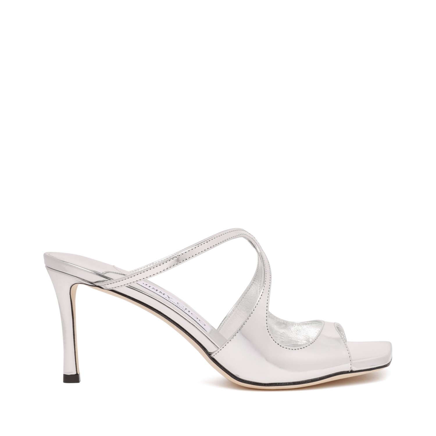 Jimmy Choo Silver Leather Clogs Anise 75. Silver leather clogs with square tip, thin heel, slip on model.