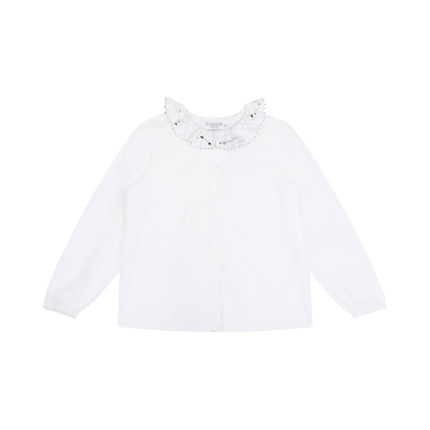 Bonpoint White Embroidered Shirt. White cotton shirt with rounded collar, embroidered details, long sleeves and button fastening.