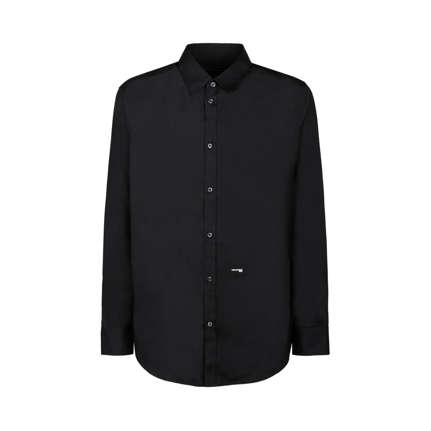 Dsquared Black Relaxed Shirt. Black cotton shirt, printed panels, front logo, all over logo print, long sleeves. Front button fastening and classic collar.