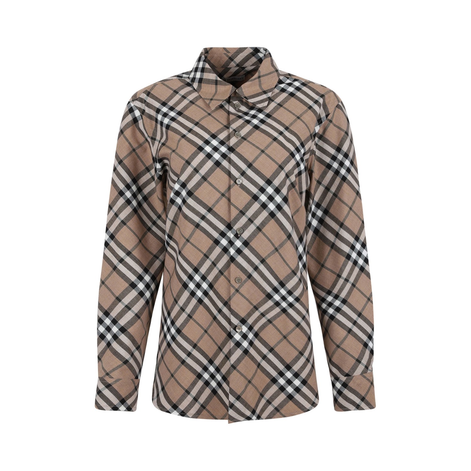 Burberry Multicolor Check Shirt. Multicolor shirt made of wool blend with all over check pattern, front button fastening, long sleeves with buttoned cuffs. Classic collar and curved hem.