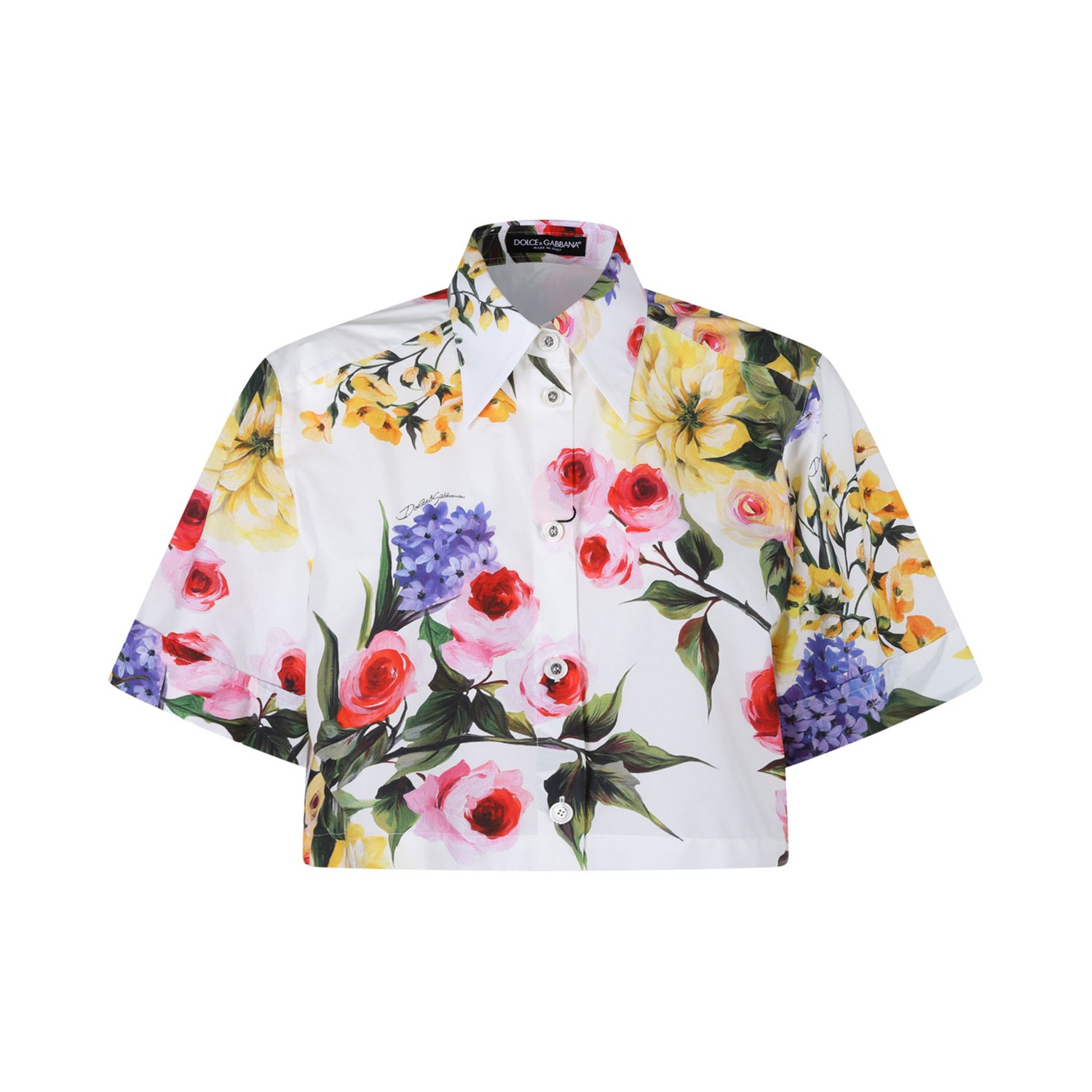 Dolce & Gabbana Multicolour Short Shirt. Multicolour short shirt in cotton poplin with flowers print, shirt collar, short sleeves, cropped fit. Button fastening with logoed bottom.