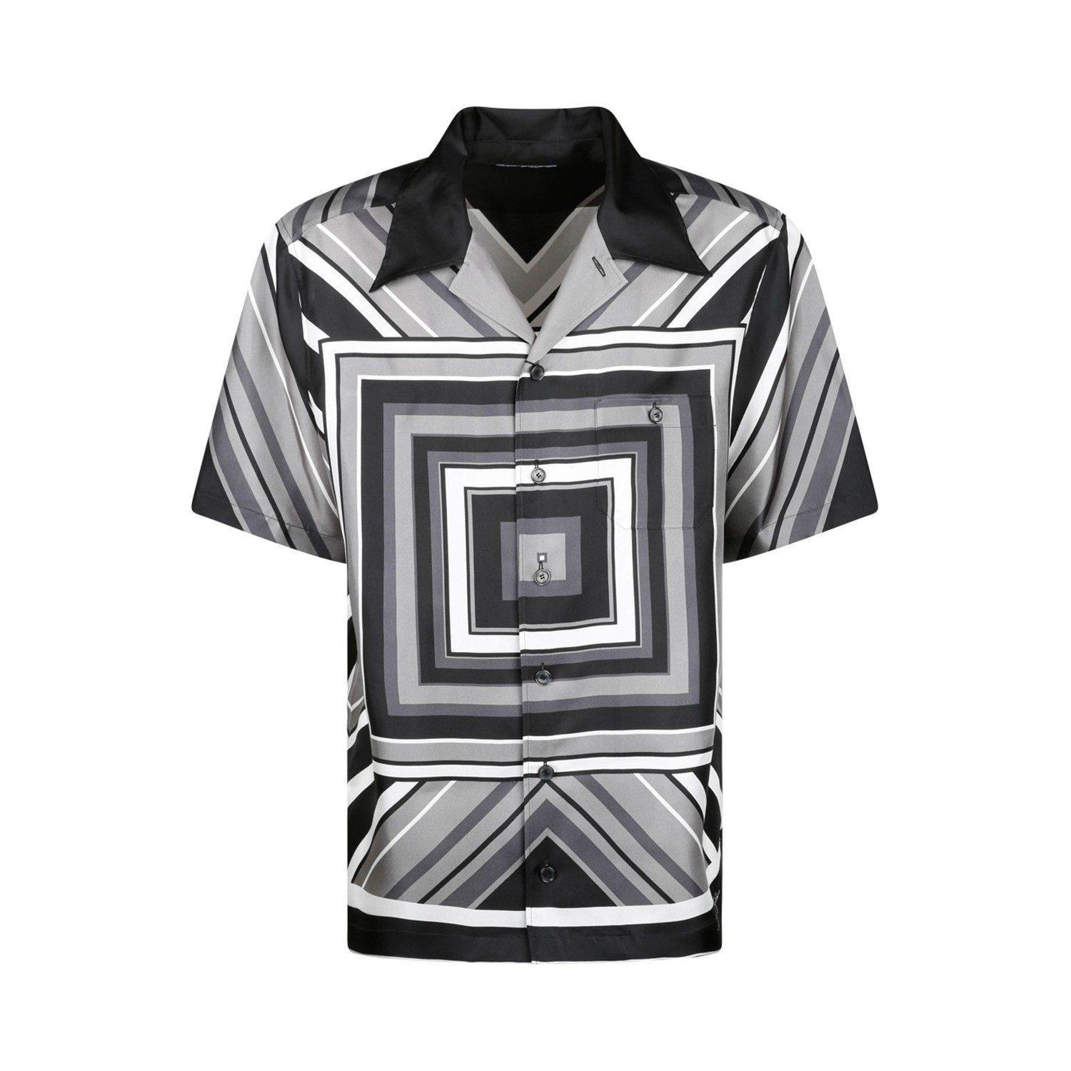 Dolce&Gabbana Multi-Striped Silk Shirt, regular collar, short sleeves, straight hem.
