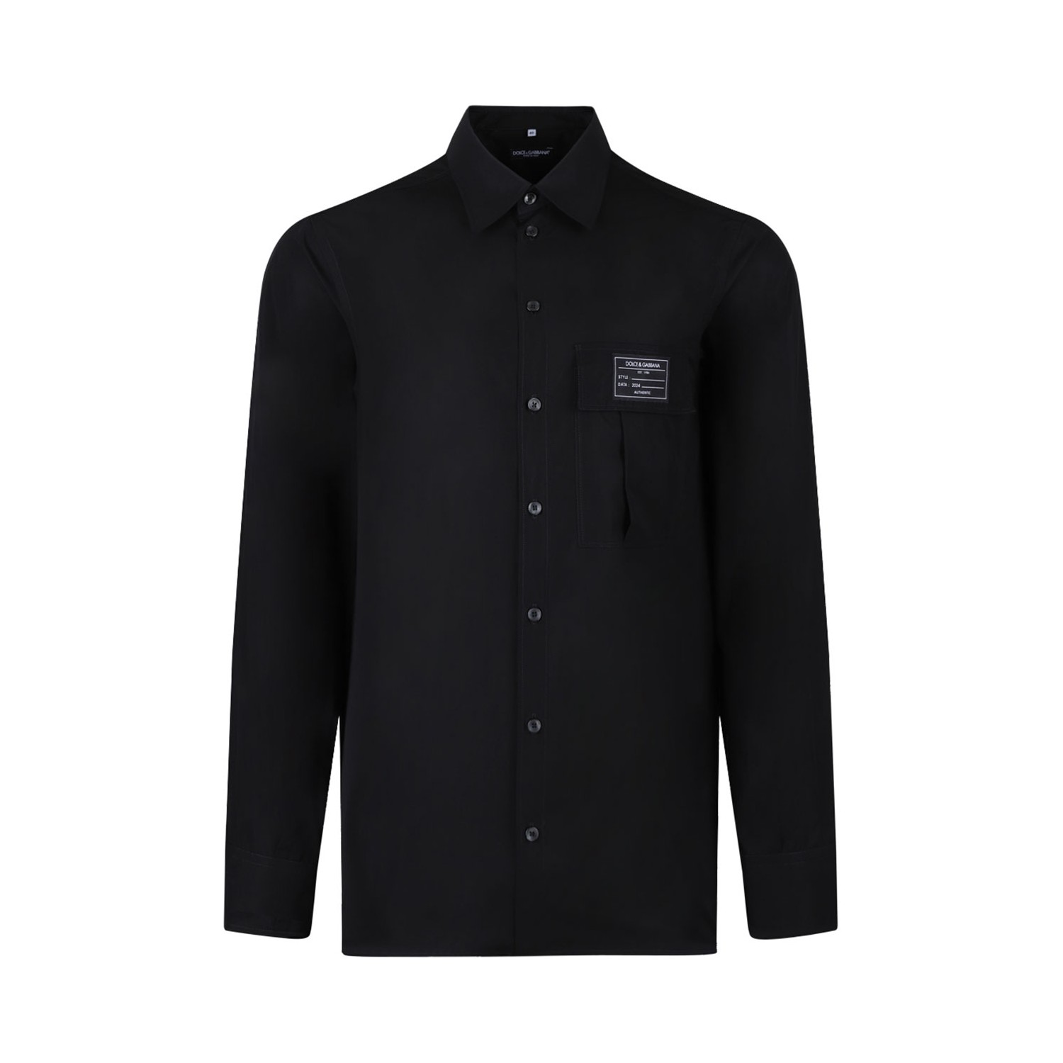 Dolce & Gabbana Black Logo Patch Shirt. Black cotton shirt, classic collar, front button fastening. Logo patch at the chest, long sleeves, straight hem.