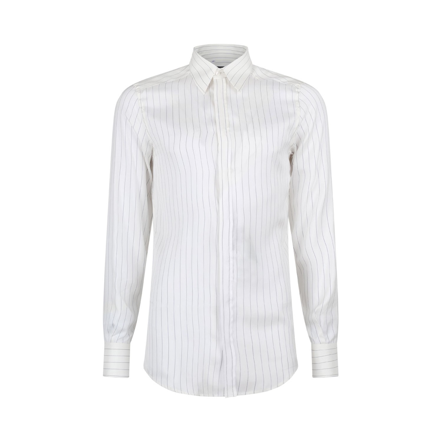 Dolce & Gabbana Striped Shirt. White silk shirt, vertical stripe pattern, long sleeves, front button fastening, buttoned cuffs.