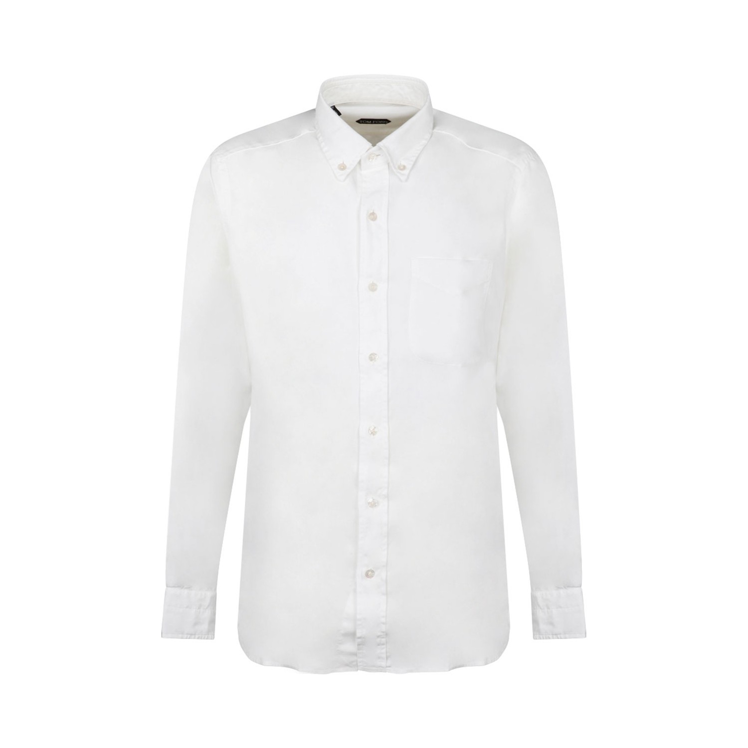 Tom Ford White Long Sleeves Lyocell Shirt. White lyocell shirt with long sleeves, front button fastening, buttoned cuffs, curved hem.