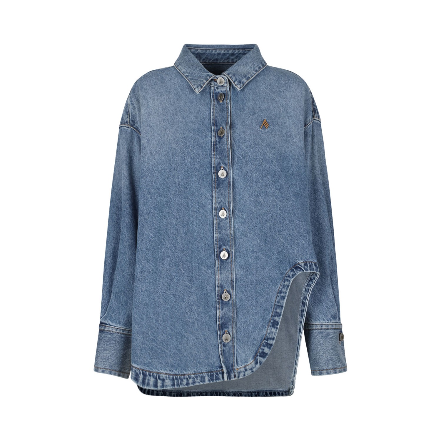 The Attico Sky Blue Diana Shirt. Sky blue cotton shirt, front button fastening, buttoned-cuff sleeves, slit detailing, embroidered logo at the chest.