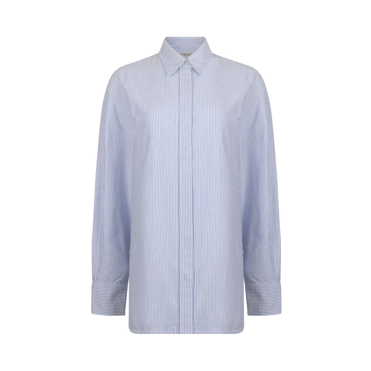 Golden Goose Stripes Shirt. White infinity stick lines shirt with double gold star on the back, long sleeves, button closure, distressed treatment.