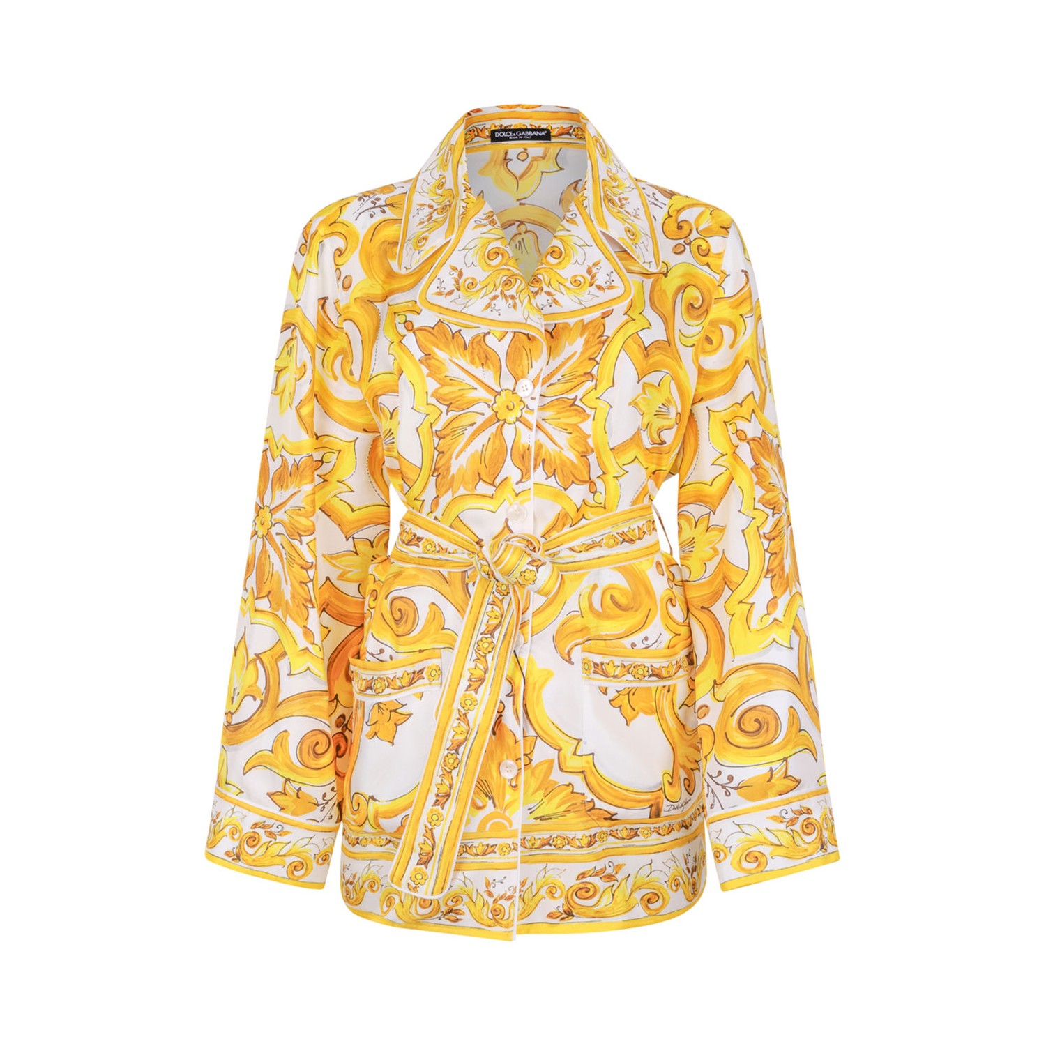 Dolce & Gabbana Twill Shirt With Majolica Print. Yellow twill shirt with Majolica print, long sleeves, patch pockets on the front. Slits in the hips and button fastening.