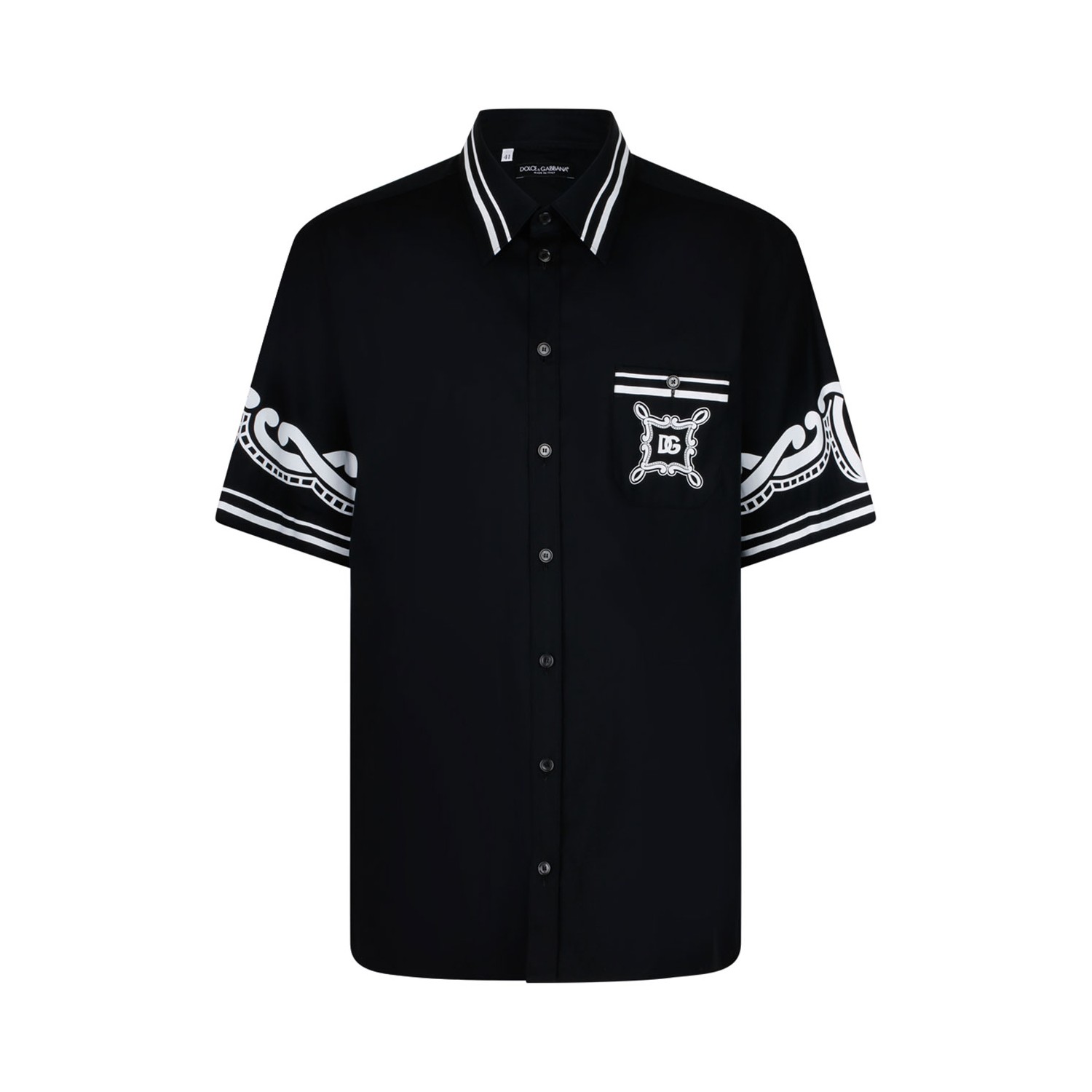 Dolce & Gabbana Black Shirt. Black cotton poplin shirt. Regular fit, italian collar, short sleeves, button closure and front pocket, with Bandana print details.