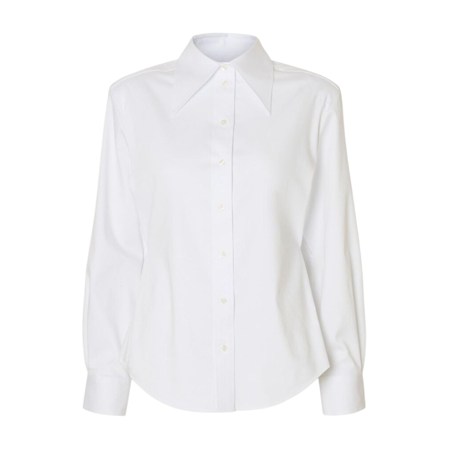 Selected White Slim Fit Shirt. White slim fit shirt with pointed collar, button-up front, long sleeves with buttoned cuffs and curved hemline.