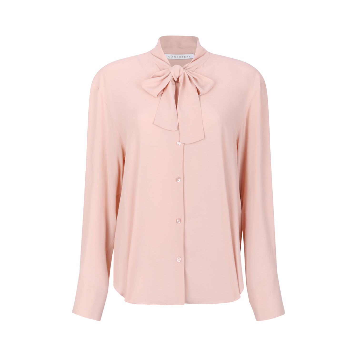 Caractere Old Rose Bow Collar Shirt. Old rose shirt, collar with bow, front button fasteing, long sleeves.