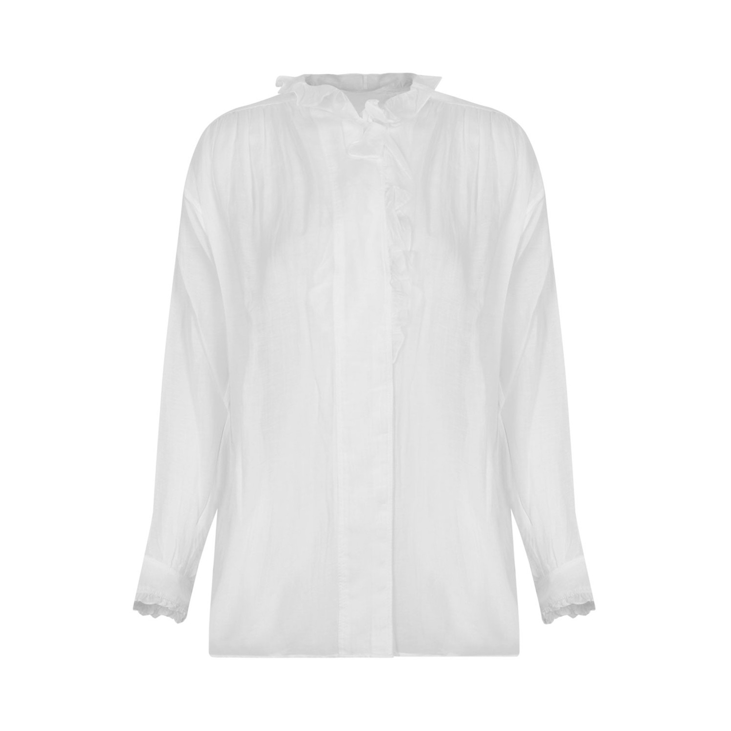 Isabel Marant White Ruffled Blouse. White ruffled blouse with concealed front button fastening, long sleeves, rear curved hem.