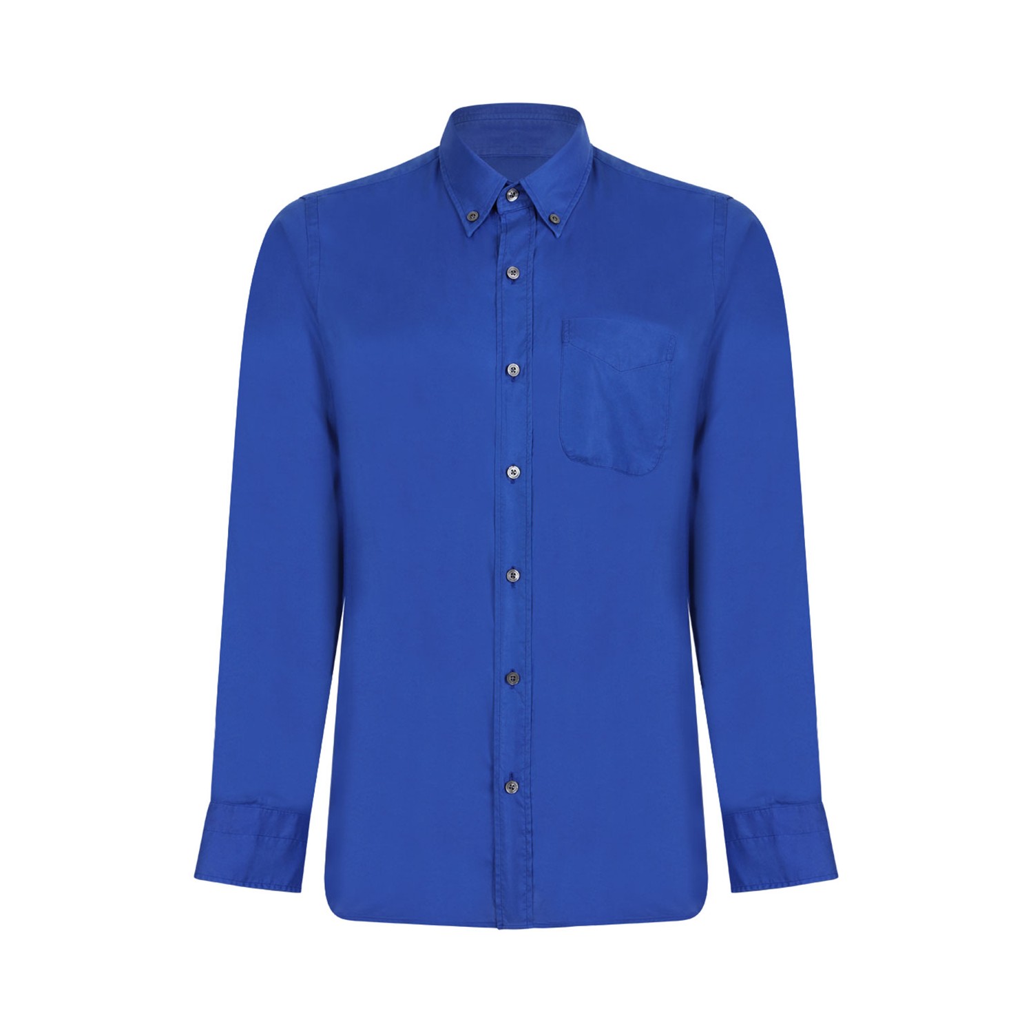 Tom Ford Royal Blue Classic Shirt. Royal blue slim fit shirt with classic collar, front button fastening, long sleeves.