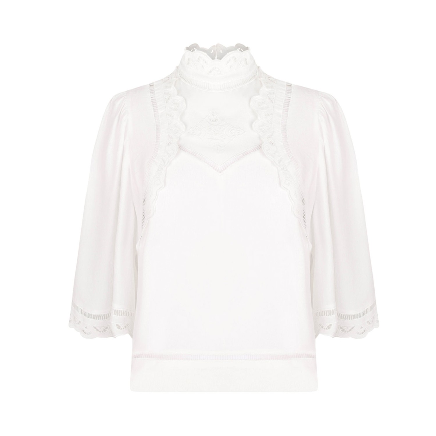 Isabel Marant Black Frany Blouse. Black blouse with rear button fastening, mock neck, short sleeves and scallop edge.