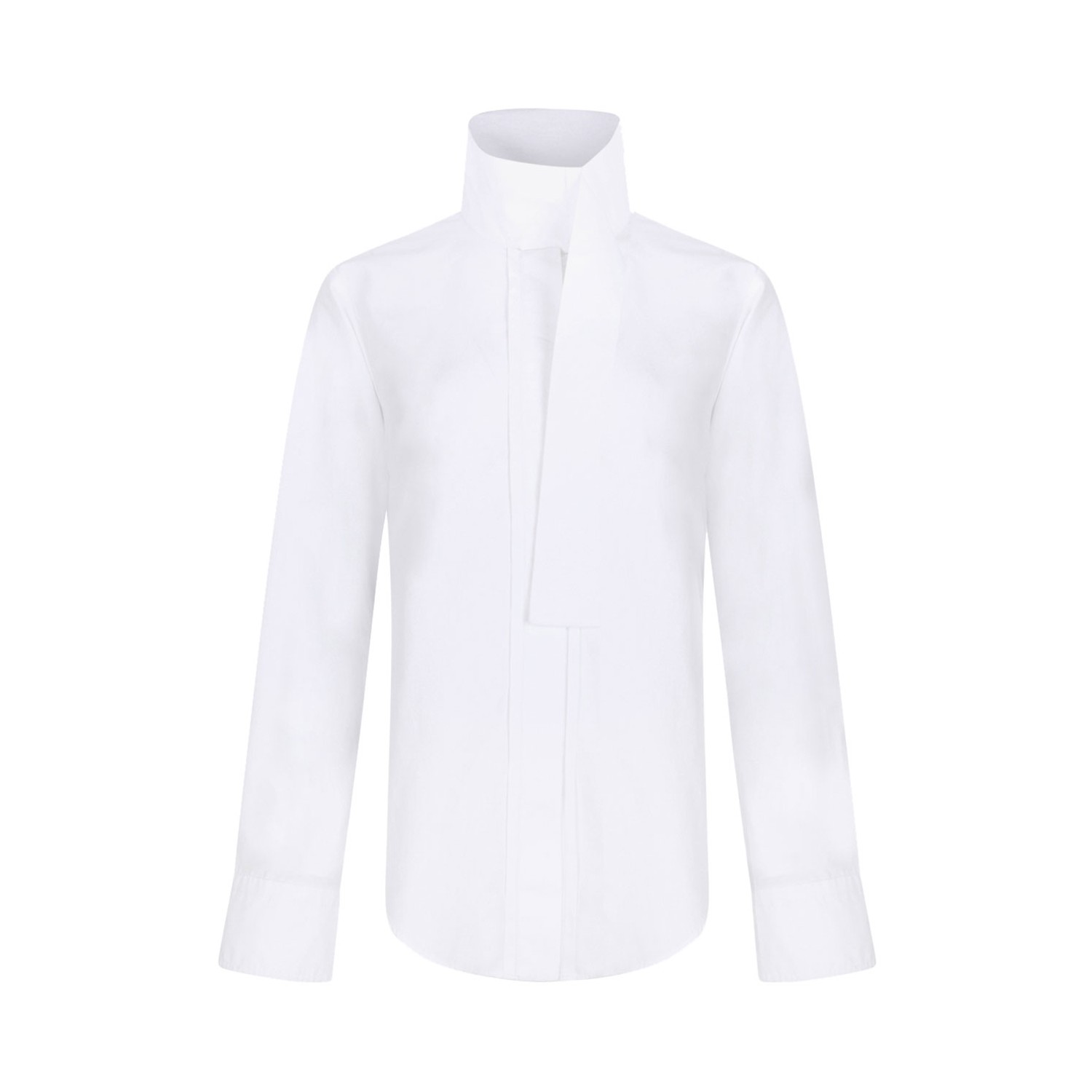 Patou White Scarf-Collar Poplin Blouse. White scarf-collar poplin blouse with embroidered logo and central pleats.