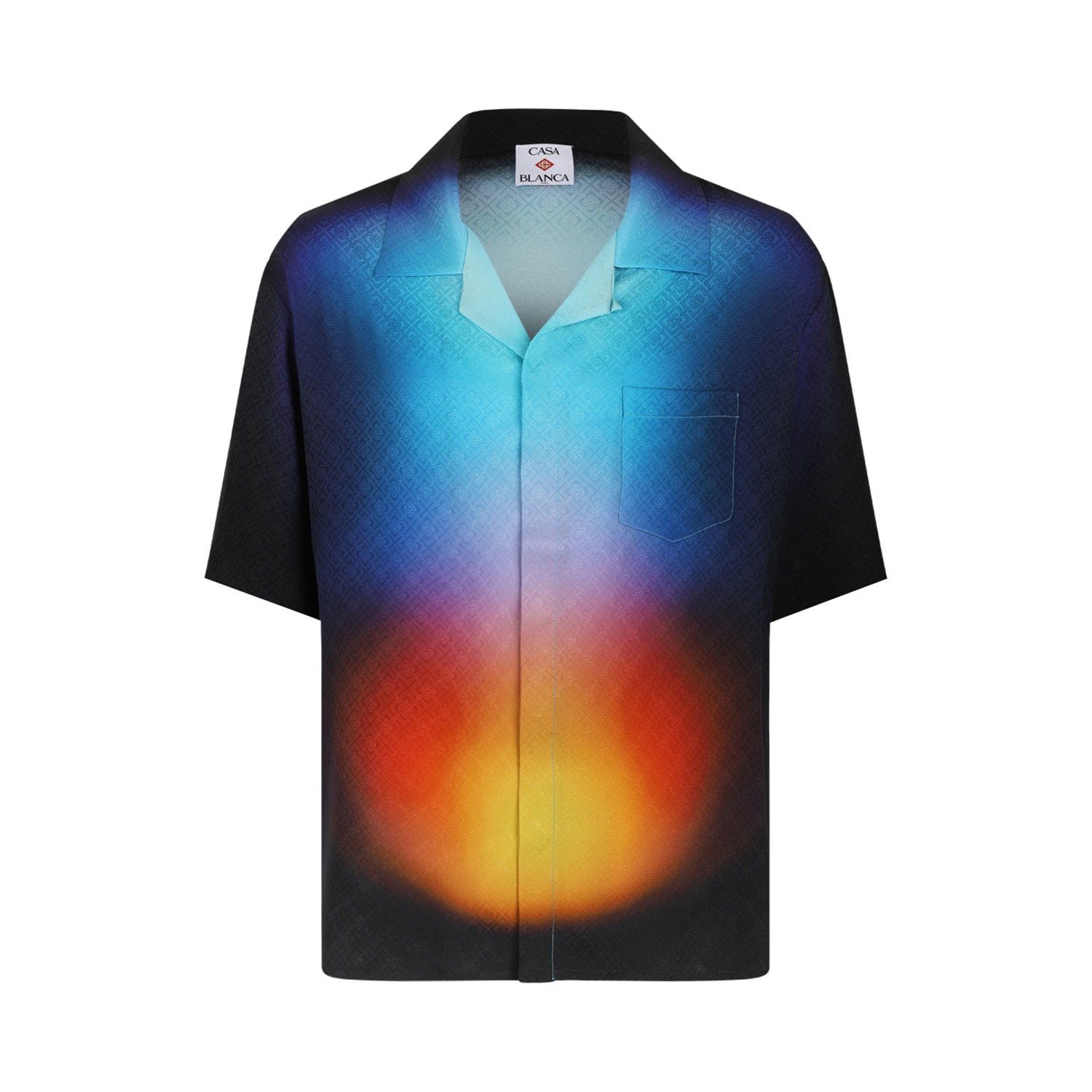 Casablanca Gradient Print Shirt. Gradient silk shirt with concealed front fastening, chest patch pocket, Cuban collar, short sleeves.