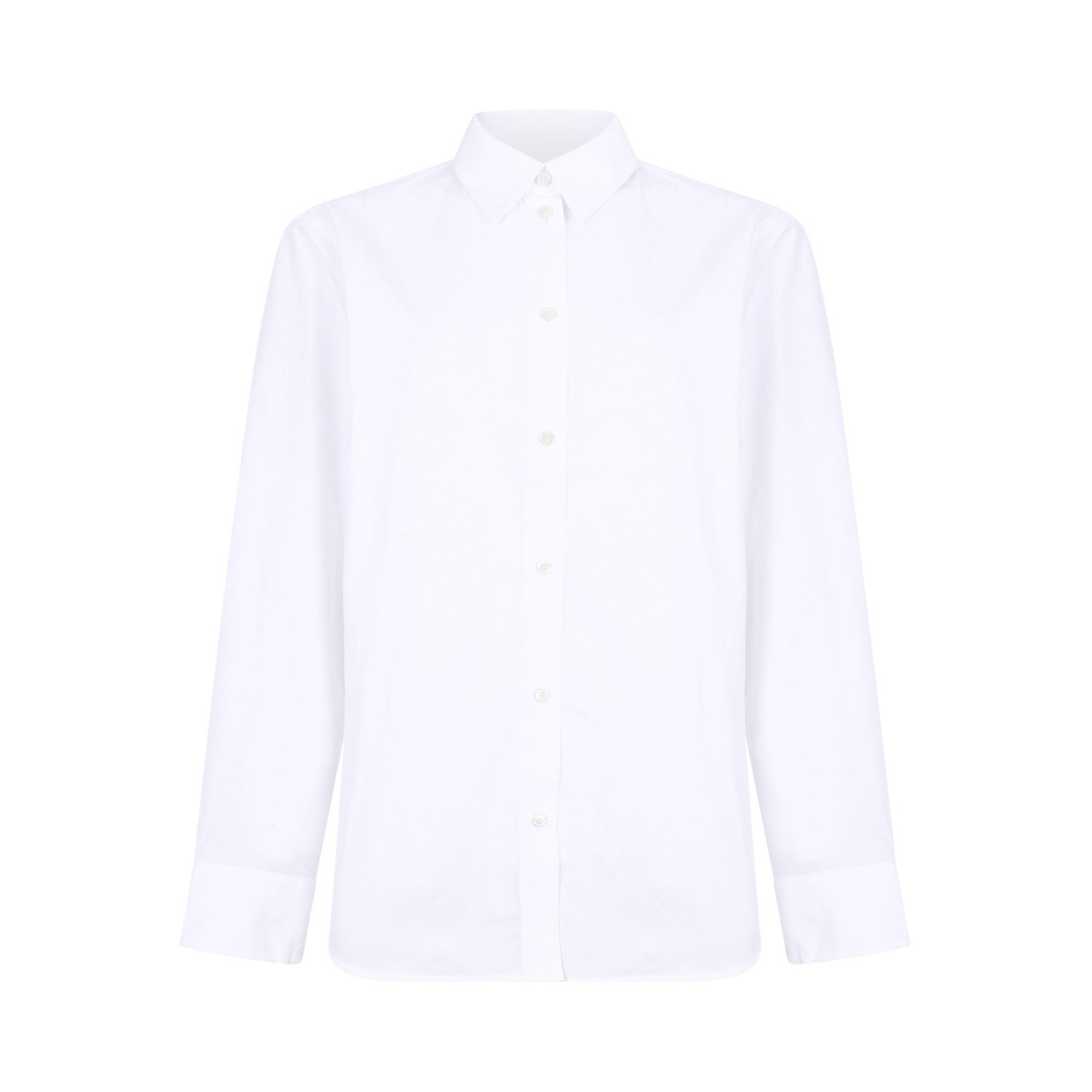 Burberry White Formal Shirt In Cotton Poplin. White long-sleeved shirt in heavy cotton poplin, featuring an embroidered Equestrian Knight design. This formal style features a regular fit and Burberry Check on the placket and cuffs in our signature archive beige.