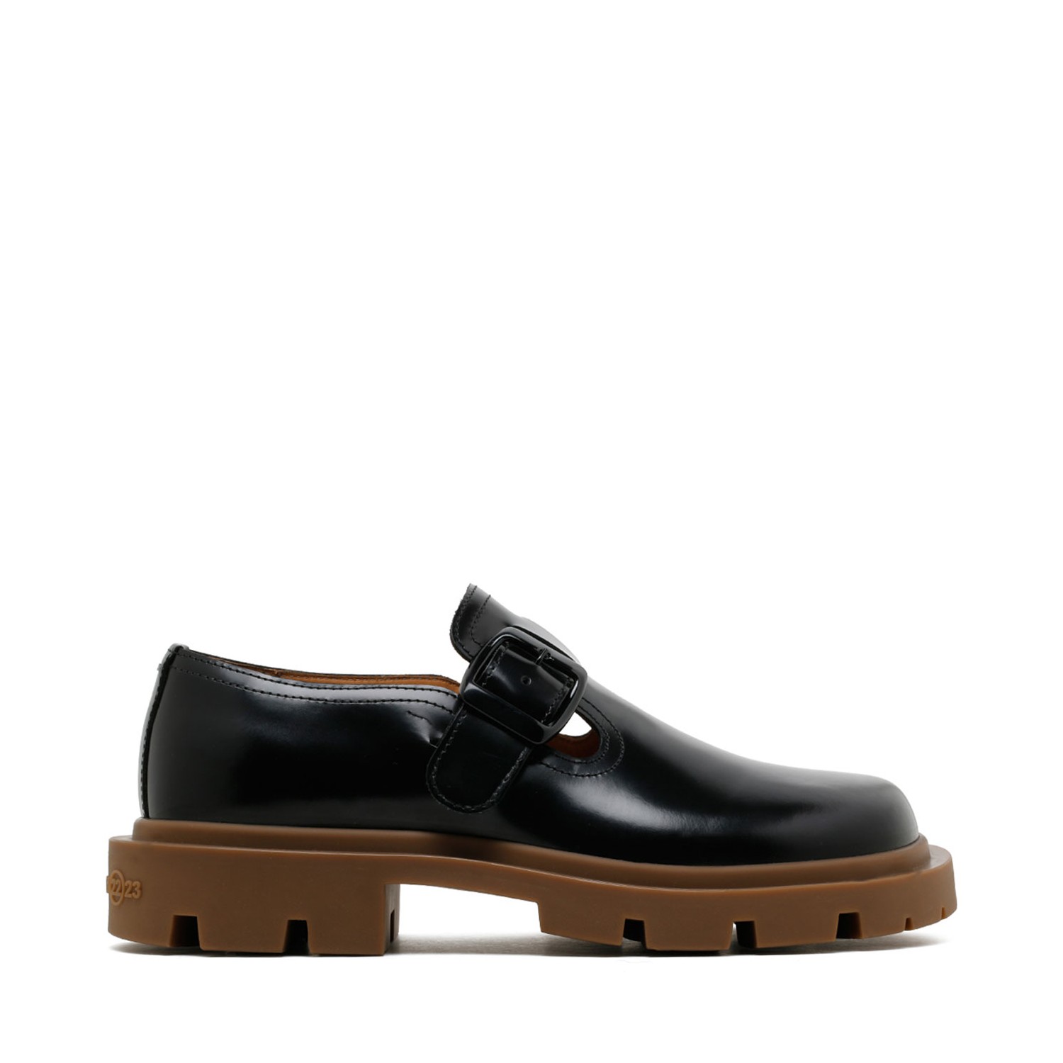 Maison Margiela Black Ivy Loafers. Black calf leather loafers, polished finish, round toe. Signature single stitch logo to the rear, barded leather insole, signature numbers motif at the sole. Contrasting rubber chunky sole, side tonal buckle fastening.