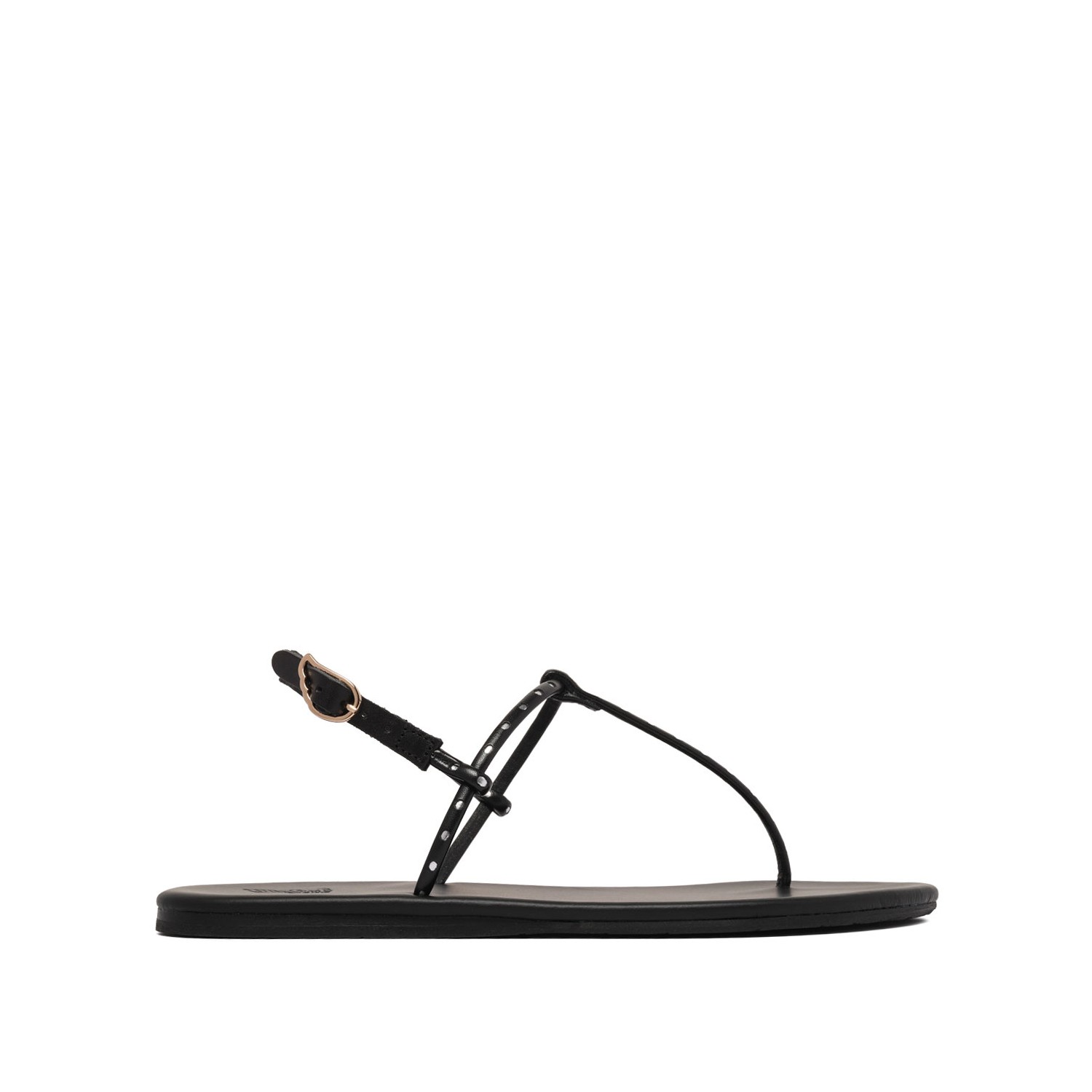 Ancient Greek Black Galaxy Sandals. Black leather sandals, elegant straps, perforated with cut-outs that are finished with a metallic colour.