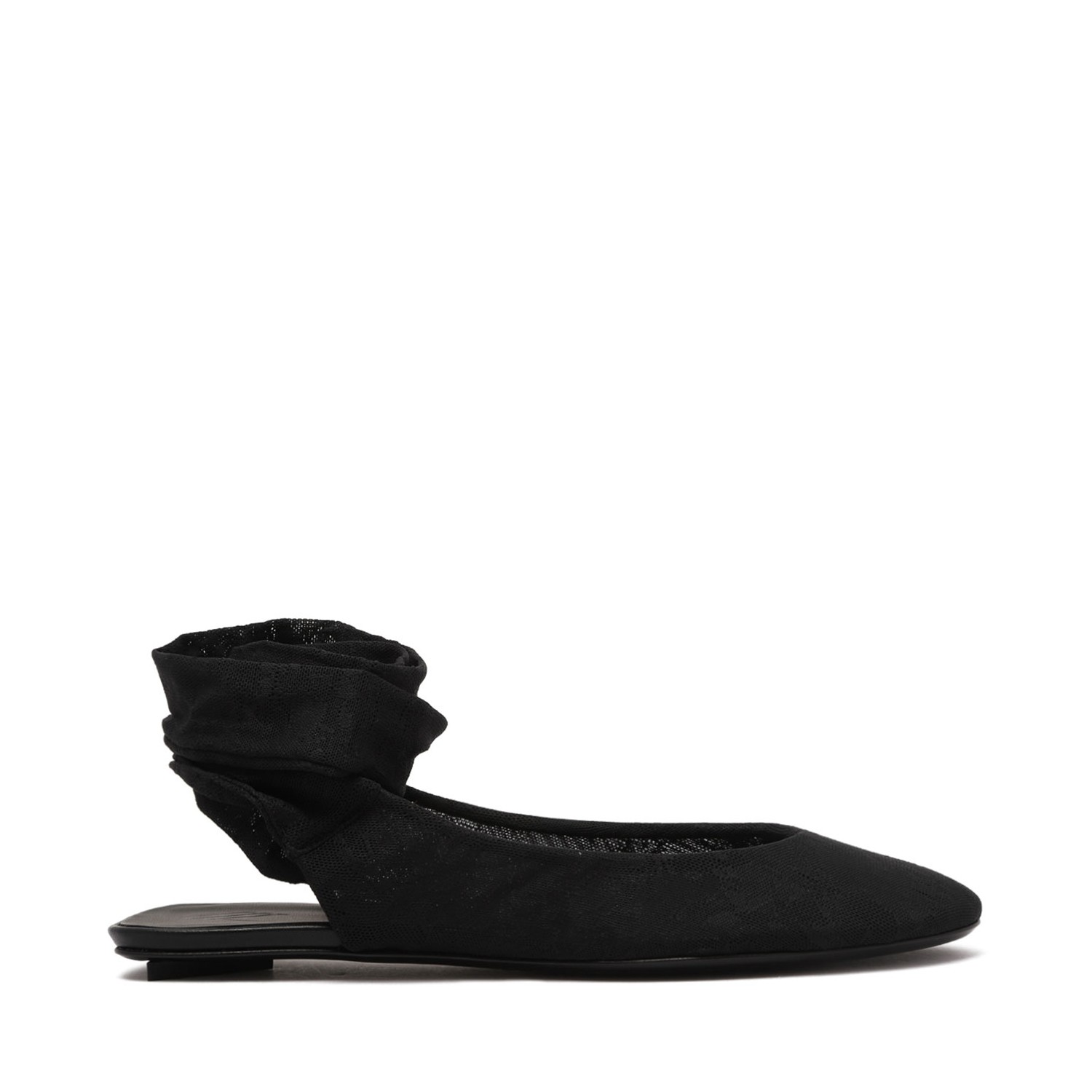 The Attico Black Cloe Ballet Flats. Black ballet flats, tie-fastening ankle strap, pattern-lace detailing, almond toe, flat sole.