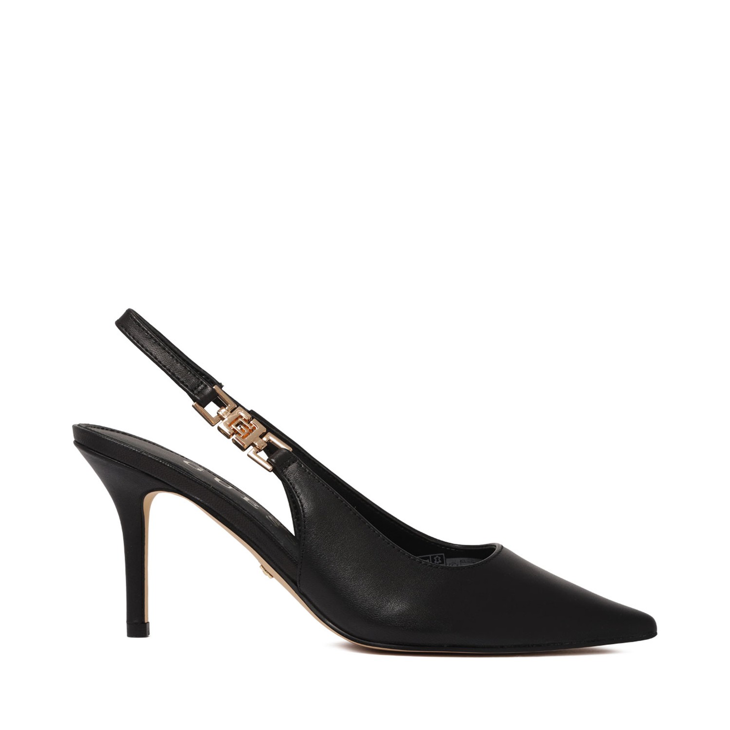 Guess Black Nassha Pumps. Black pumps, elasticated slingback strap, pointed toe, high stiletto heel.