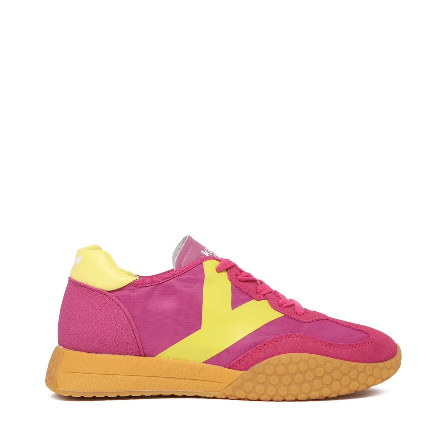 Keh Noo Pink and Lime Sneakers. Pink and lime contemporary vintage sneakers Leather upper. Rubber heel. Natural cotton laces. Rubber sole with cushioned EVA midsole Soft cotton terry lining. Removable mesh-lined EVA insole.
