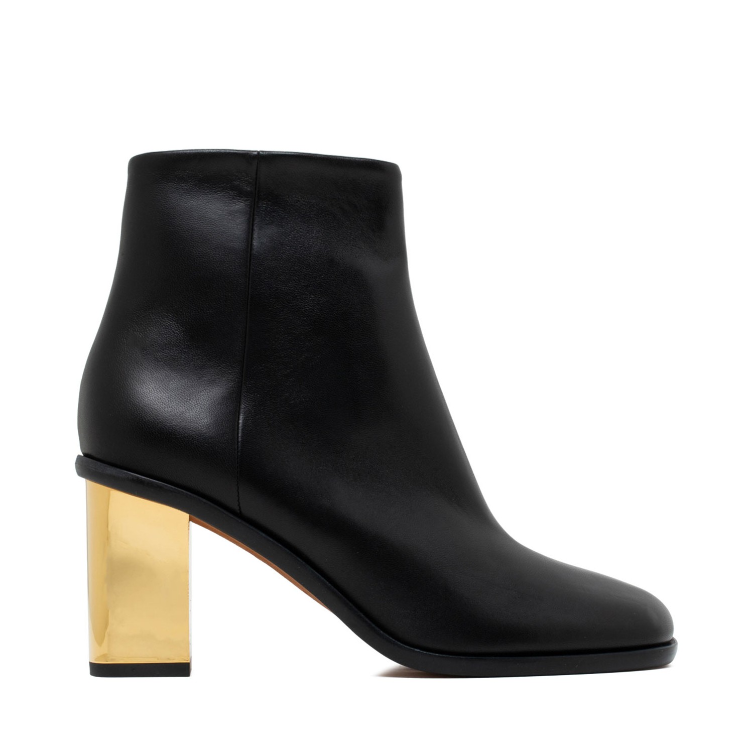 Chloe Black Rebecca Ankle Boots. Black leather upper, squared toe line, zip fastening on inner side, golden-tone heels, leather sole and lining.