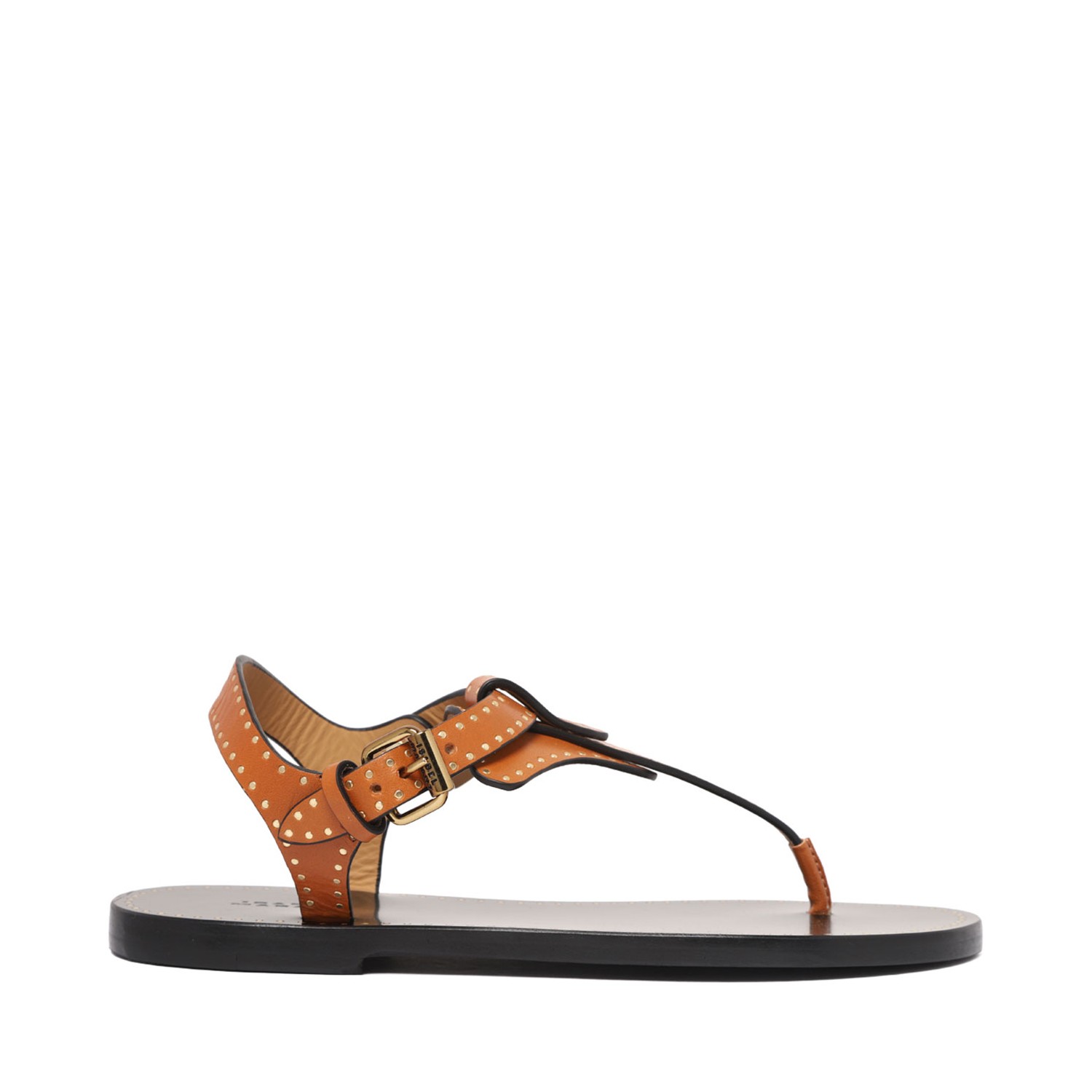 Isabel Marant Jooni Flat Sandals. Light brown calf leather sandals with side buckle fastening, leather sole, branded leather insole, thong strap.