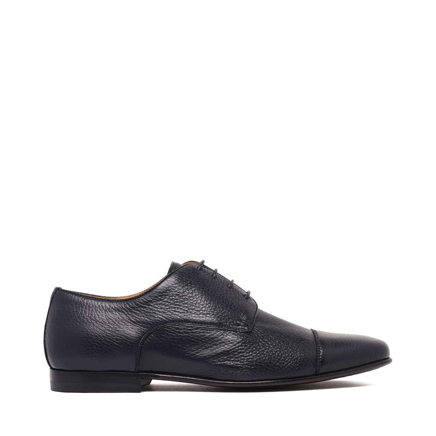 Testoni Navy Portonovo Oxford Deer. Men's Oxford lace-up loafers, made from high quality hand polished calfskin. Bolognese 'bag' construction that offers comfort and flexibility, classic line. Lining of the invitation, Lambrusco-colored sole with rubber inserts, Testoni logo printed on the insole.