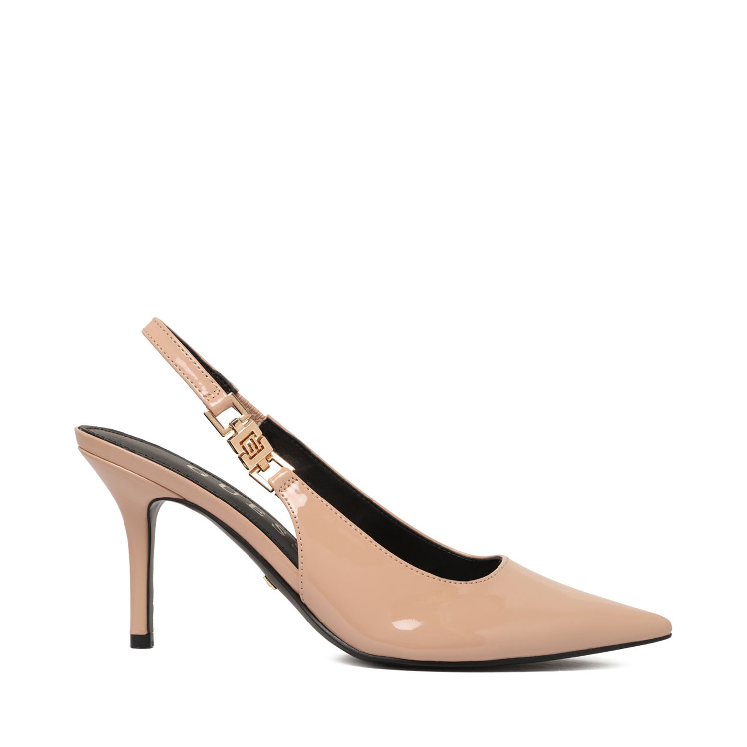 Guess Almond Beige Nassha Pumps. Almond beige pumps, elasticated slingback strap, pointed toe, high stiletto heel.