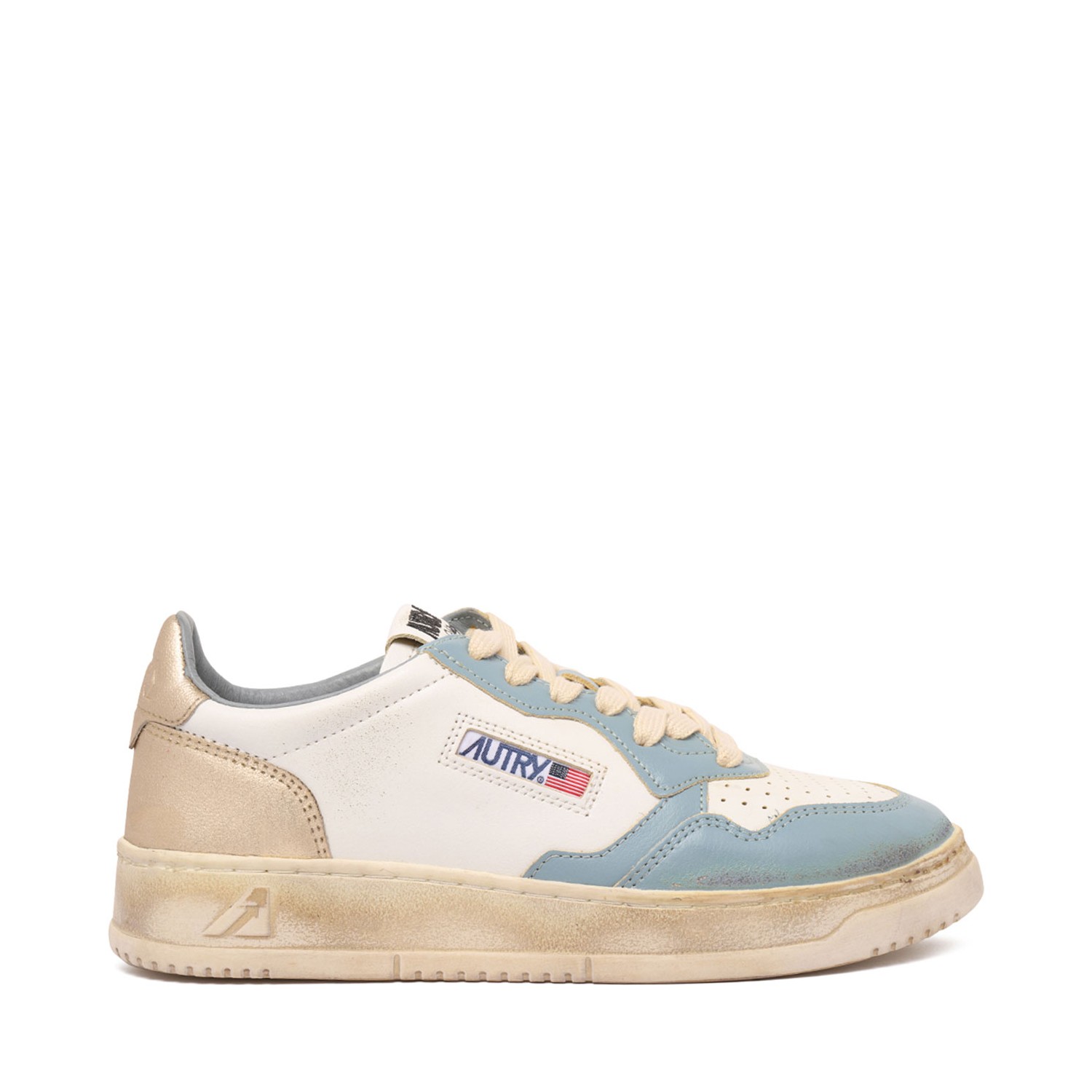Autry Super Vintage Sneakers. White and multicolour leather vintage sneakers with front lace-up fastening, branded heel counter. Logo patch to the side and logo patch at the tongue.