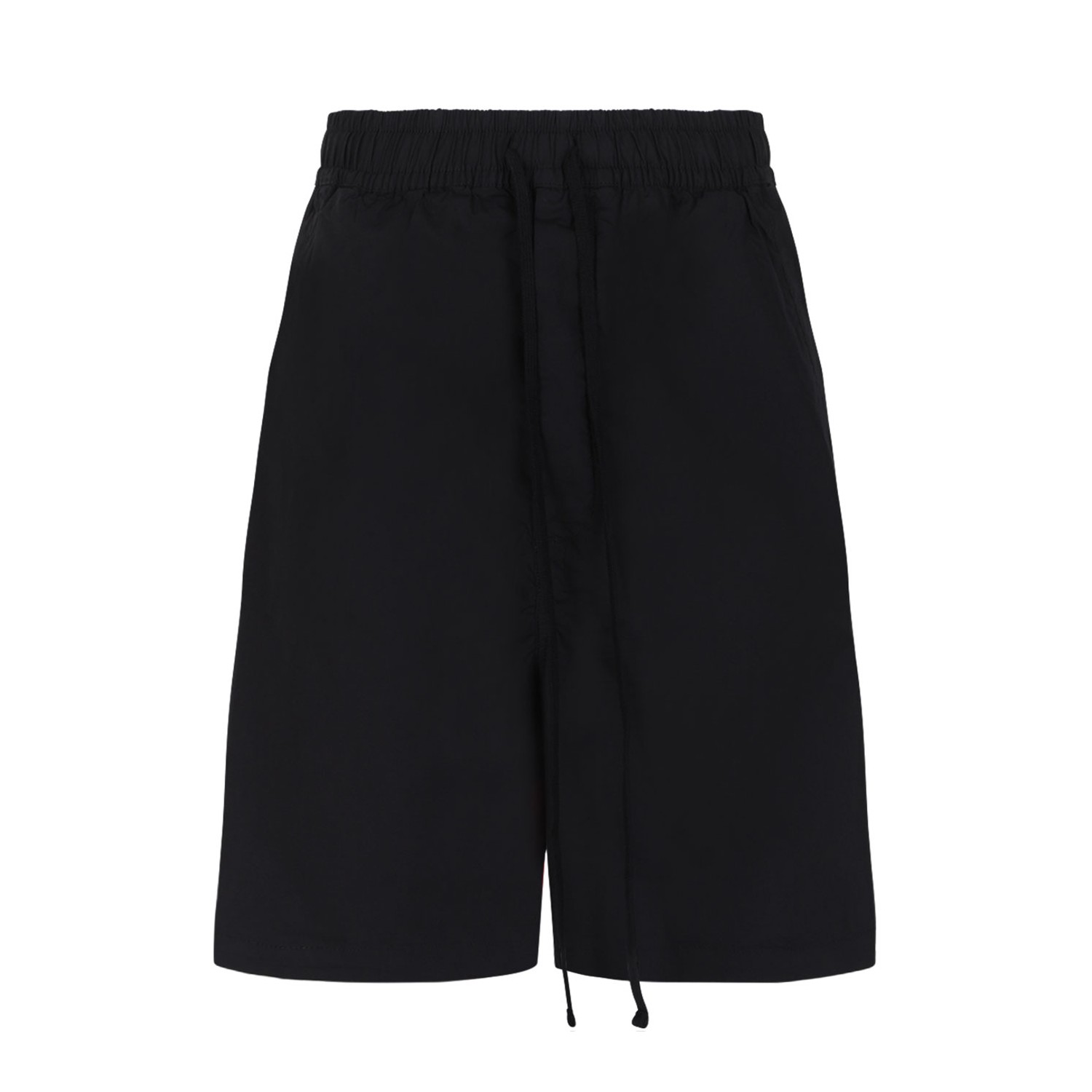 Thom Krom Black Drawstring Shorts In Cotton Blend. Black knee-length shorts with a minimal, contemporary silhouette. Shorts crafted in cotton blend with a smooth, fluid feel. Featuring an elasticated waistband with adjustable drawstring, relaxed fit, clean front panels and subtle raw-inspired detailing, designed for an understated, modern urban look.