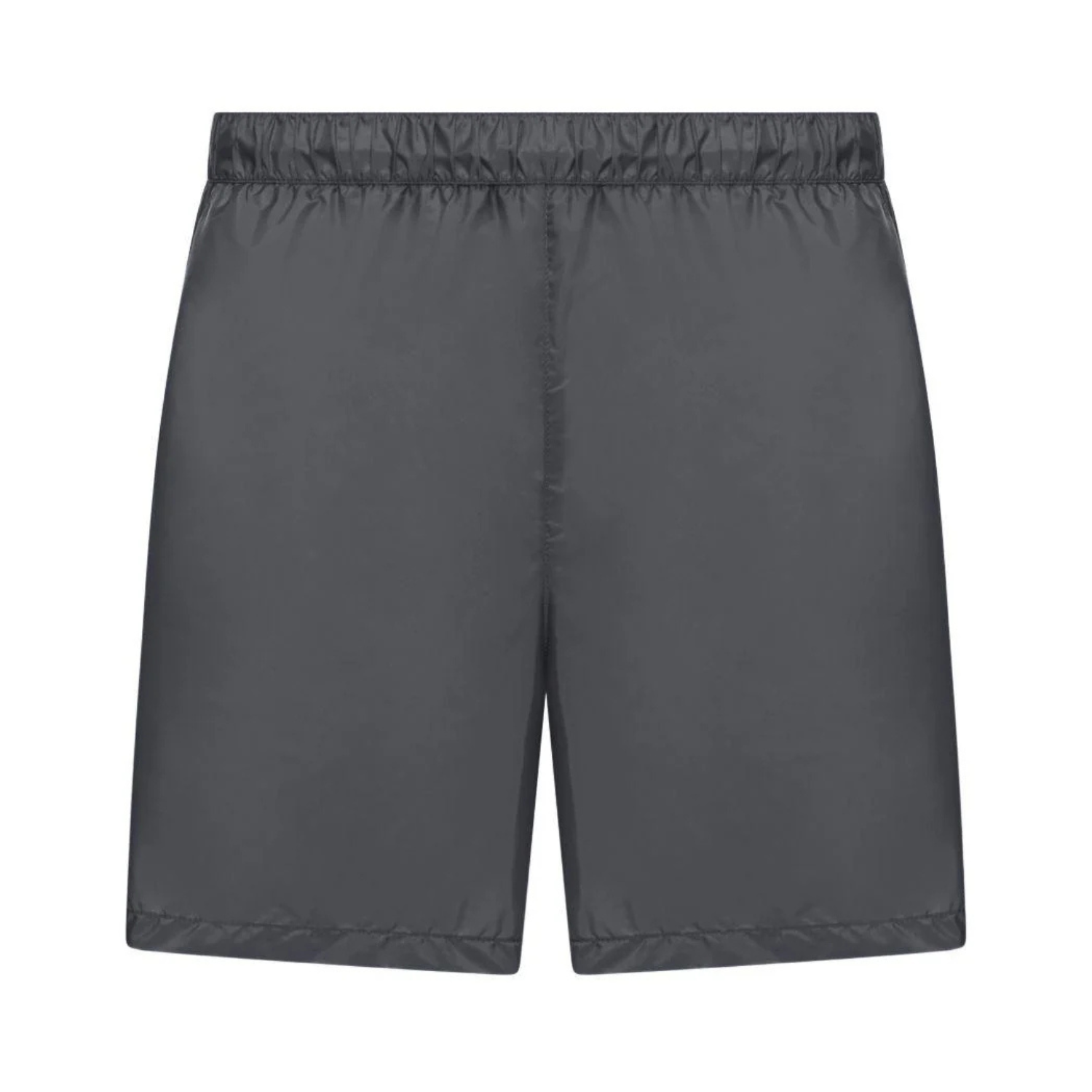 Prada Steel Sky Pocket-Detail Shorts. Steel sky shorts with a relaxed, contemporary silhouette. Shorts crafted in lightweight technical fabric with a smooth, glossy finish. Featuring an elasticated waistband for comfort, side pockets, rear zip pocket with contrast trim detail and iconic Prada logo plaque for a refined, sporty touch.