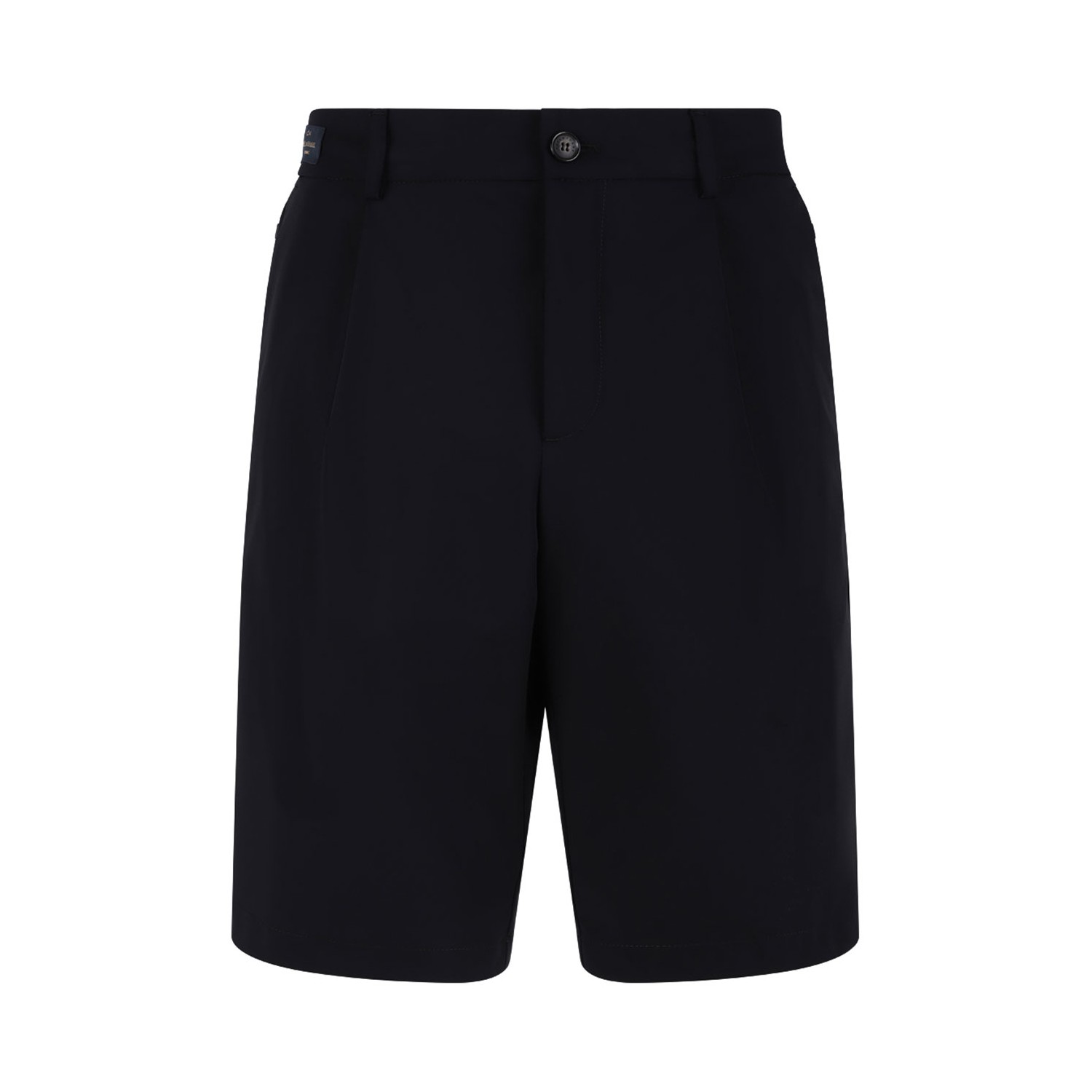 Paul & Shark Black Bermuda Shorts. Tailored bermuda shorts crafted in black fabric with a clean, structured silhouette. Designed with a mid-rise waist, front button and zip closure, and belt loops for a refined finish. Featuring side pockets and a streamlined cut that offers both comfort and versatility. A modern essential that reflects Paul & Shark