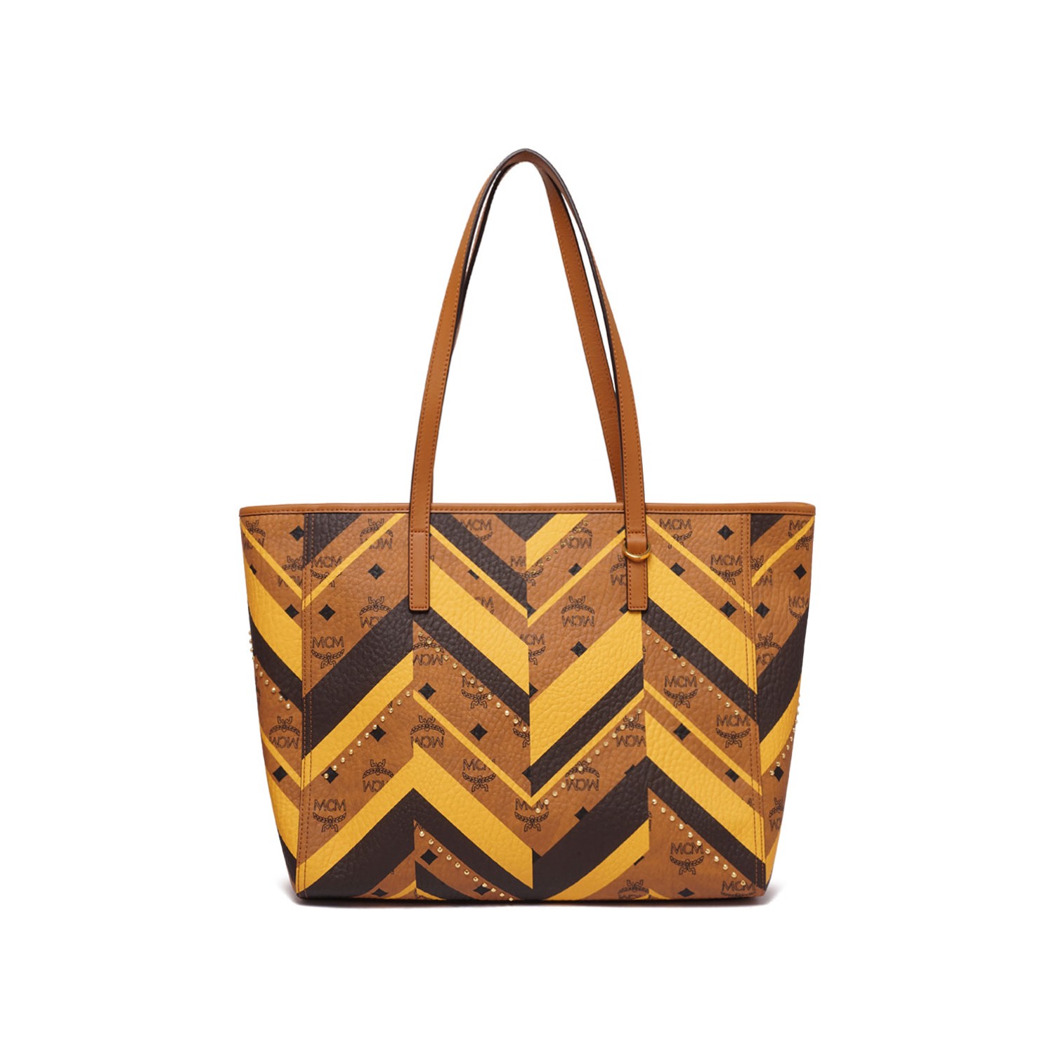 MCM Medium Toni Geometric-Pattern Tote Bag. Medium Toni geometric-pattern tote bag with stud embellished, top zip closure, double handle.