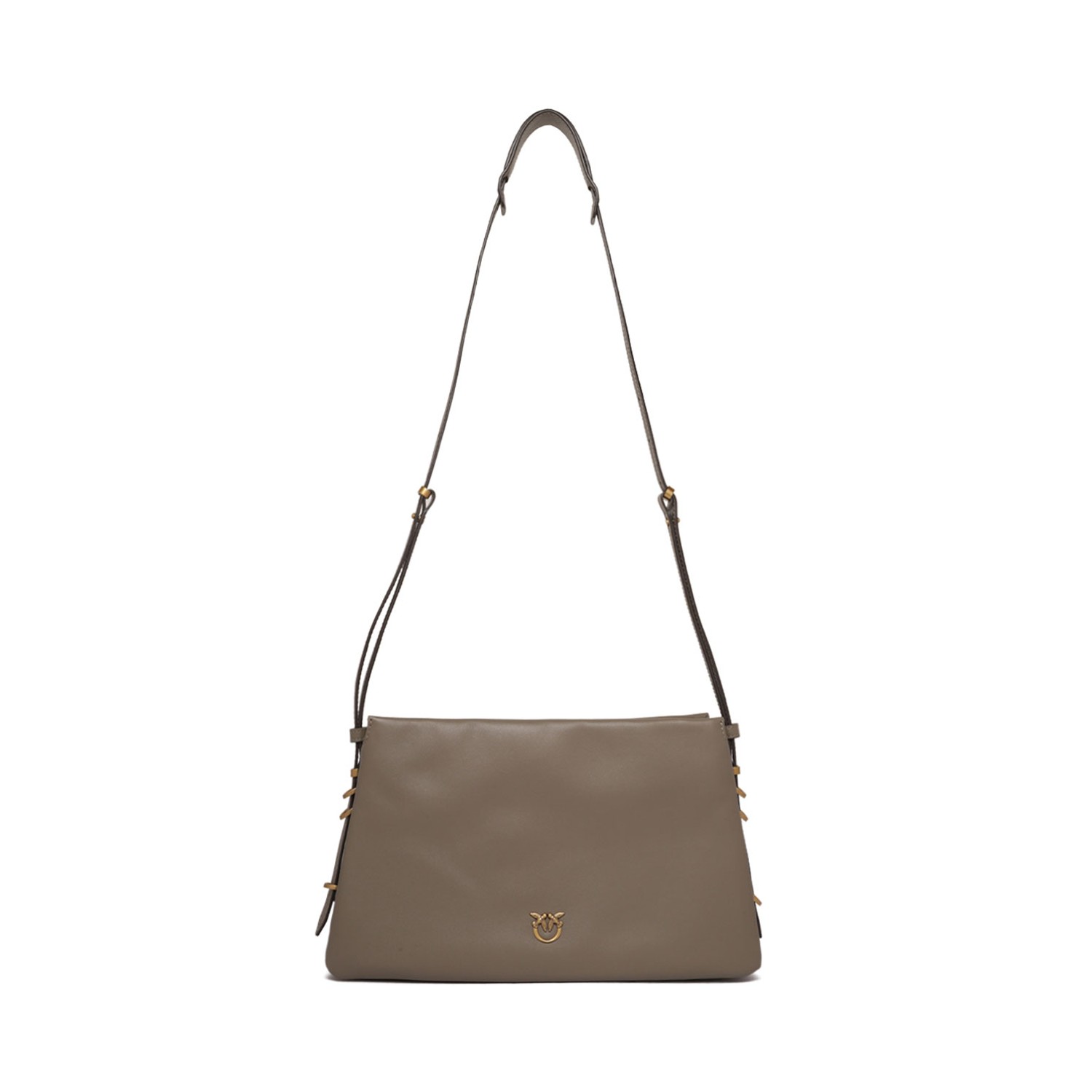 Pinko Ecru Leather Crossbody Bag. Ecru leather crossbody bag with top zip fastening, adjustable shoulder strap.