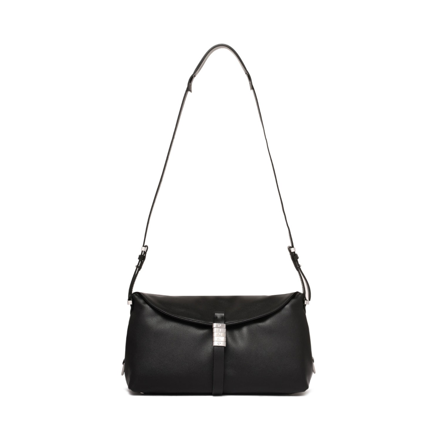 Pinko Black Flap-Closure Leather Shoulder Bag. Blackleather construction shoulder bag with adjustable top-handle, flap closure and silver-tone hardware.