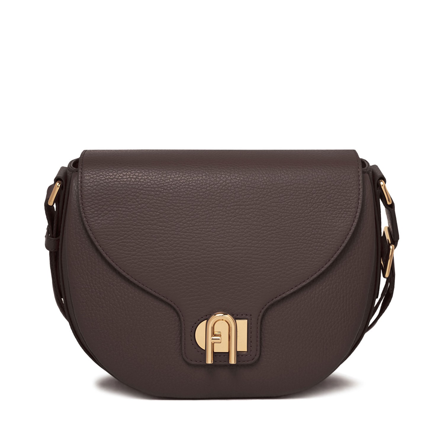 Furla Mogano Lotus Crossbody Bag. Mogano crossbody bag rafted from light beige hammered leather, the Furla Lotus bag combines practicality and sophistication. The compact and structured design is complemented by gold-tone metal details and an adjustable shoulder strap.