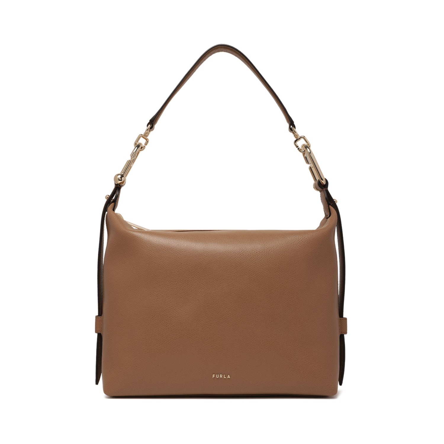 Furla Toffee Tonie Shoulder Bag M. Tonie hobo bag features a spacious and roomy design in premium printed leather. Featuring two shoulder straps of different lengths, it can be worn over the shoulder or crossbody. By removing the handle, the two Arco logo-shaped elements can be attached together for a new and distinctive top handle version.