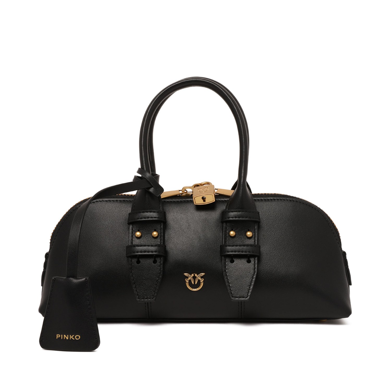 Pinko Black Shoulder Bag With Logo. Black shoulder bag with logo, top handles, zip closure, padlock, pendant with logo, buckle detail.