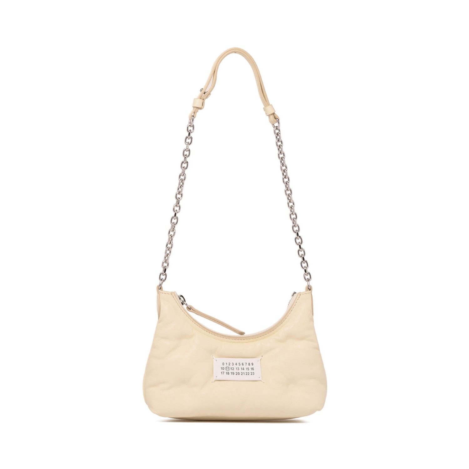 Maison Margiela Micro Glam Slam Shoulder Bag. Toile calf leather shoulder bag, top zip fastening, leather and chain-link shoulder strap. Padded design, signature numbers motif.
