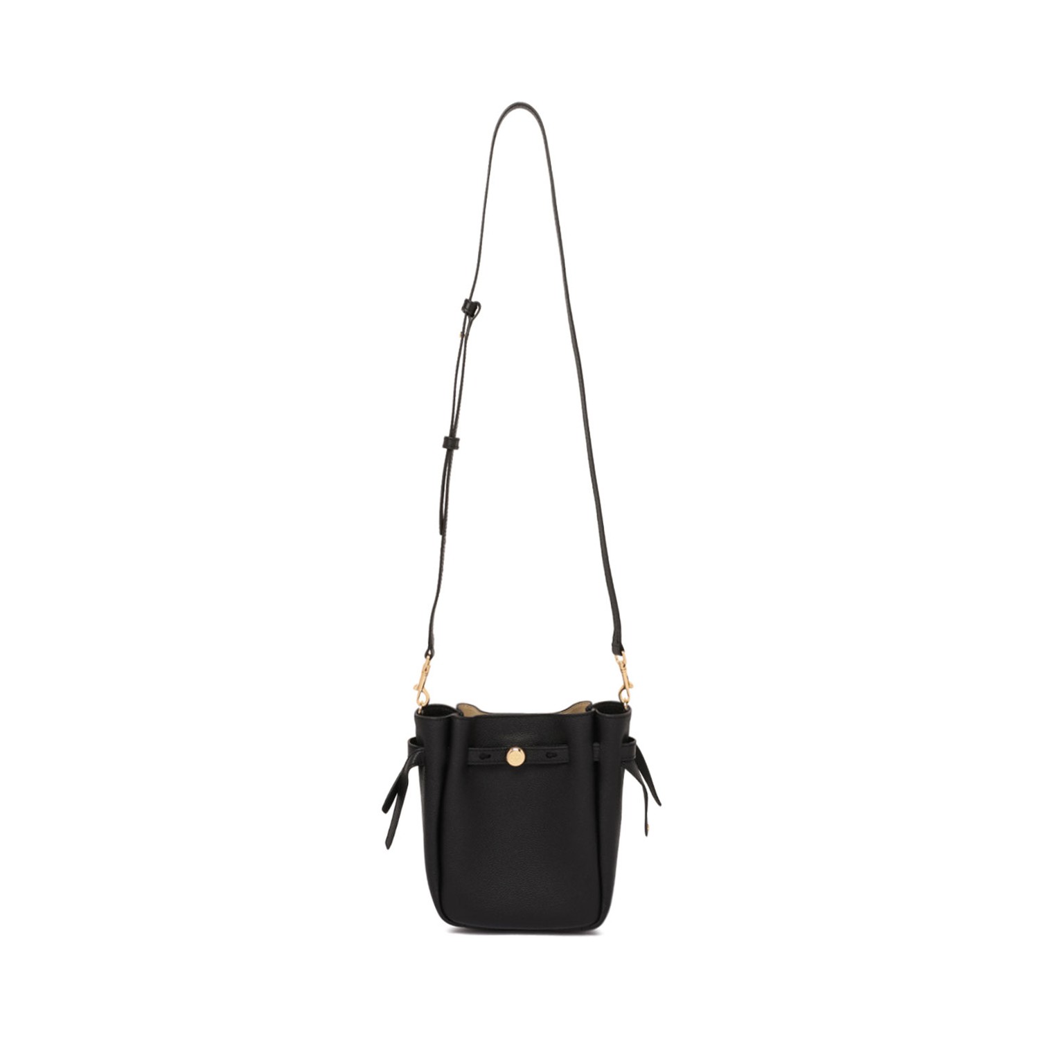 Tory Burch Black Romy Phone Shoulder Bag. Black Romy phone shoulder bag is crafted from premium hammered leather, with a thin belt that defines its soft curves and movement. Finished with minimalist details, a comfortable shoulder strap and internal pockets for a lightweight and highly functional model.