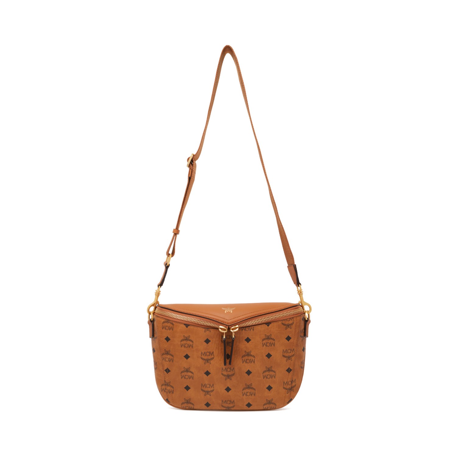 MCM Cognac Diamond Bum Bag In Printed Canvas. Cognac Diamond bum bag in printed canvas with all-over Visetos print and a laminated printed logo on the top. Removable adjustable fabric belt, zip closure and lined interior with a zip pocket.