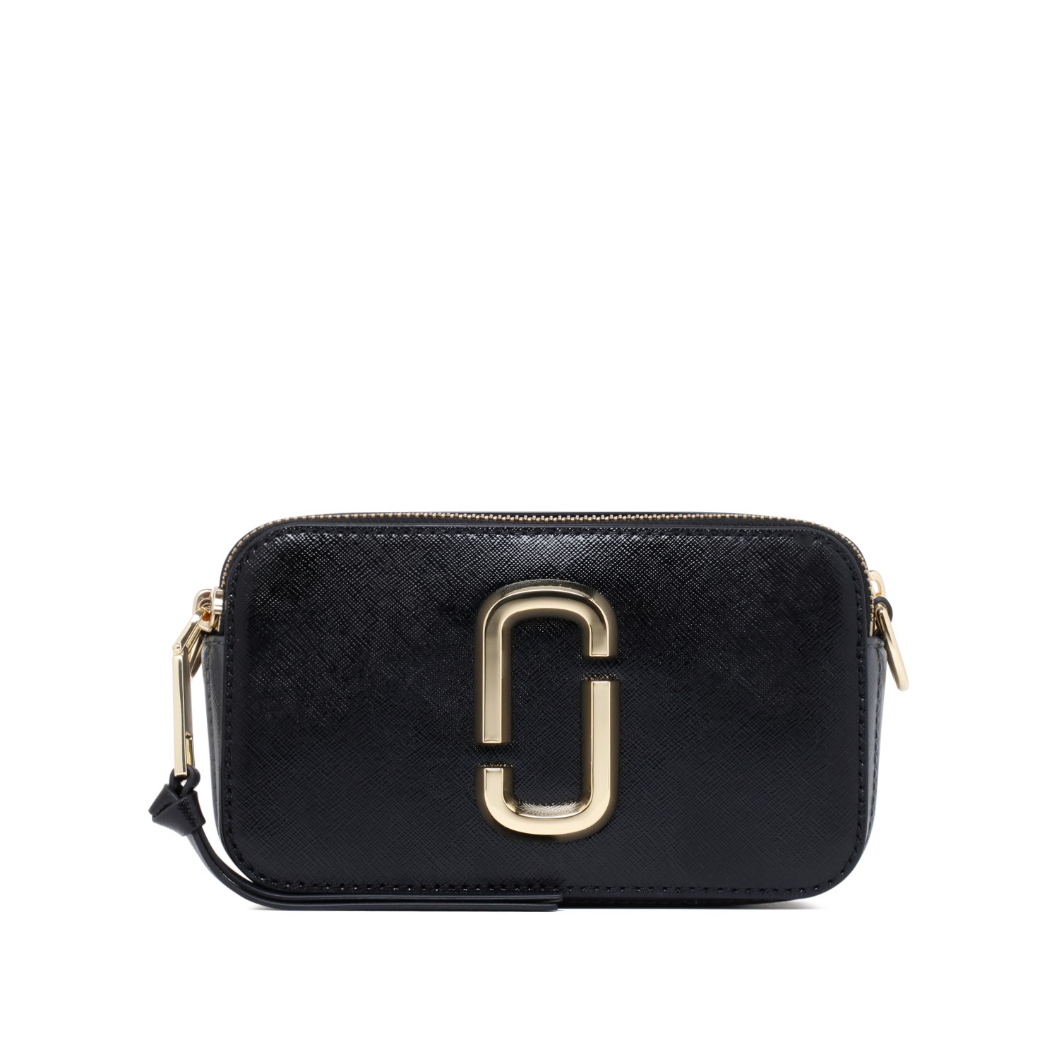 Marc Jacobs Black Leather J Marc Crossbody Bag. Iconic black crossbody bag defined by a sleek, compact silhouette. Crafted from smooth, high-quality leather, this Marc Jacobs bag features the signature oversized J Marc hardware in a polished gold-tone finish, adding a bold and recognizable touch. The structured rectangular shape is complemented by a zip-around closure, ensuring both security and practicality. Designed with a versatile crossbody strap, it offers hands-free ease while maintaining a refined, modern aesthetic. The minimalist design is elevated by luxurious materials and statement detailing, reflecting the brand